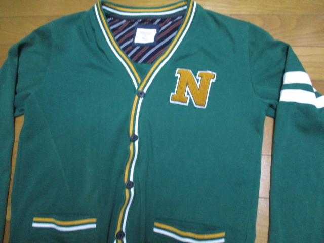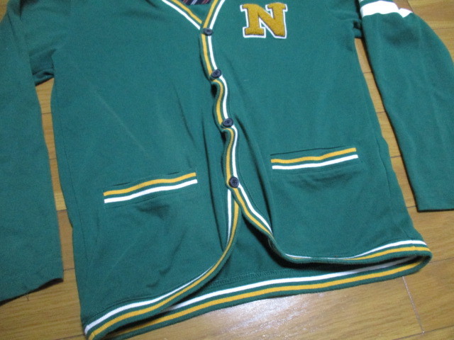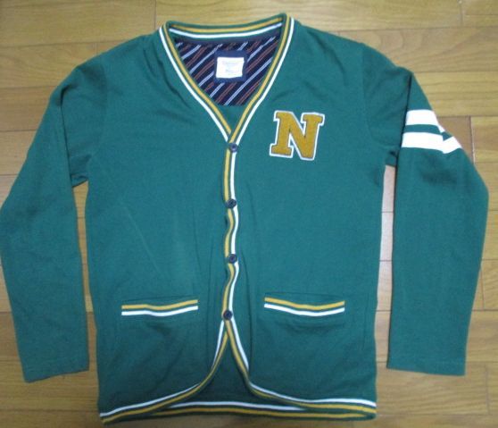 スウェット カレッジ カーディガン Lサイズ 緑 グリーン系 N ワッペン