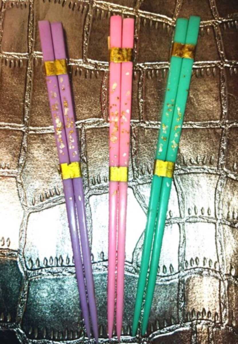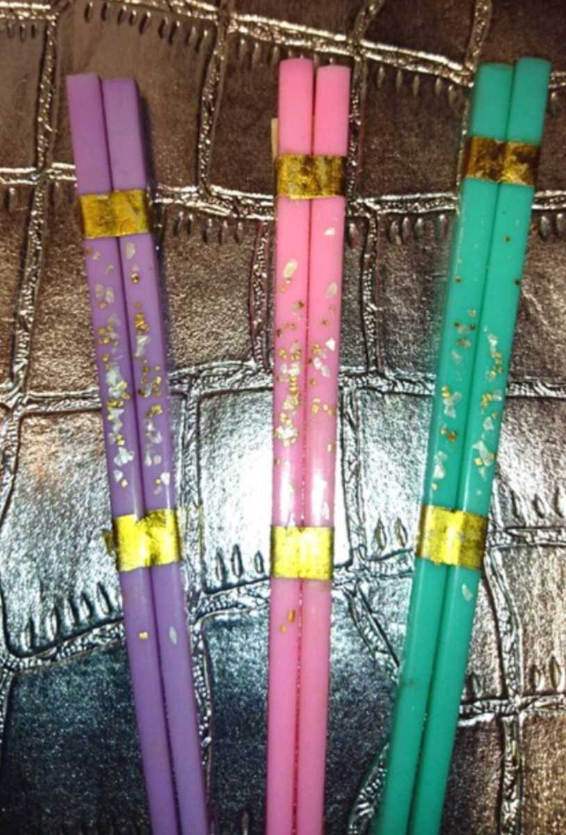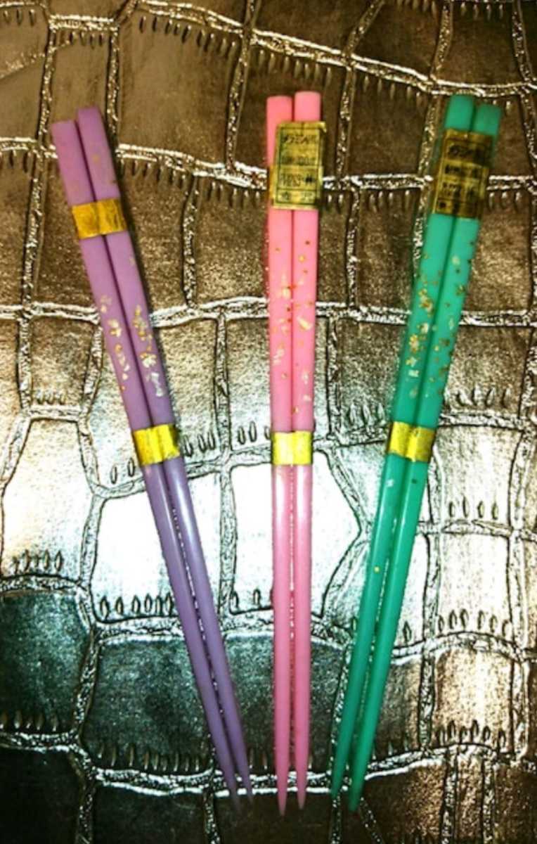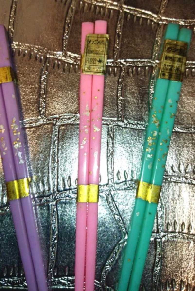 昭和レトロ 箸 3本 セット パステルカラー キラキラ 金箔 螺鈿細工 ファンシー カトラリー