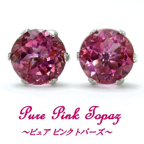 ピュアピンクミスティックトパーズのスタッドピアスです。