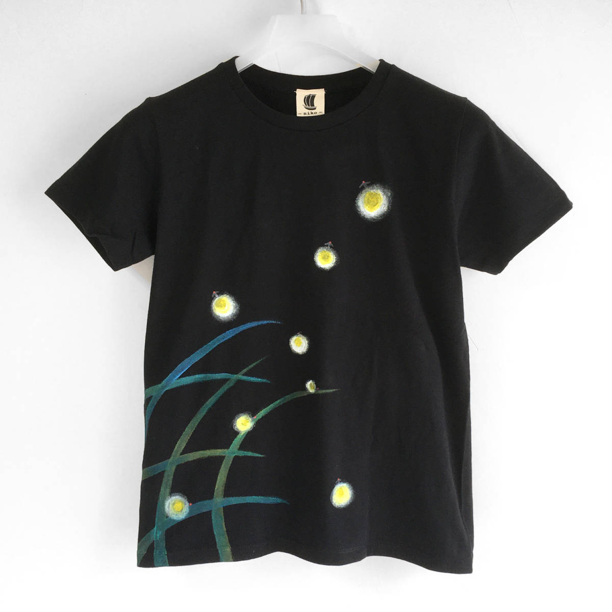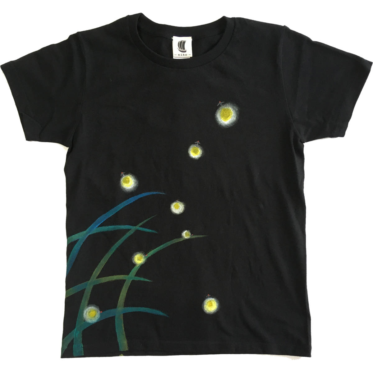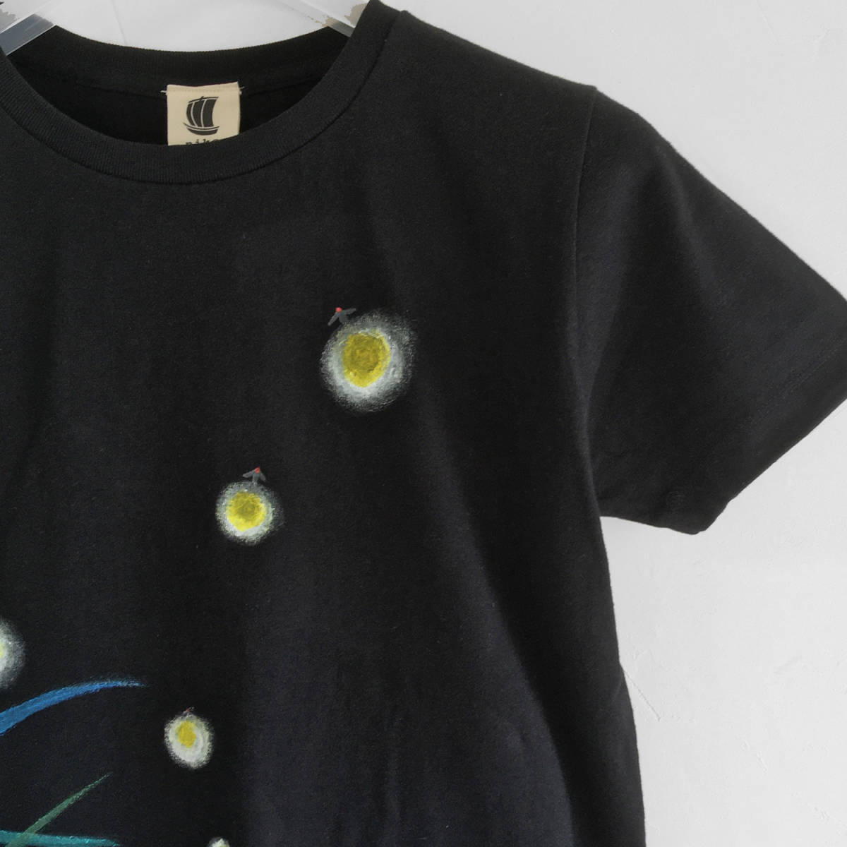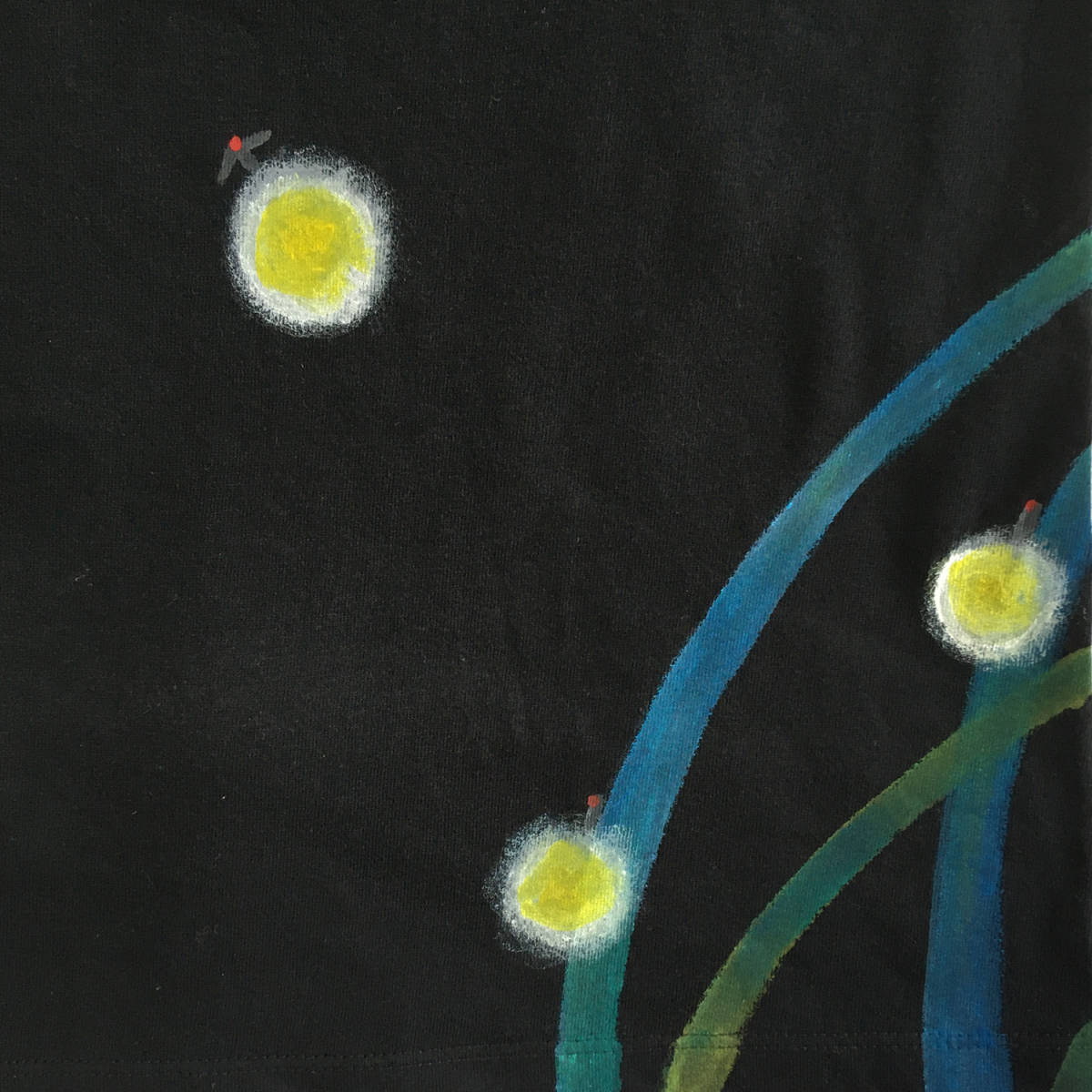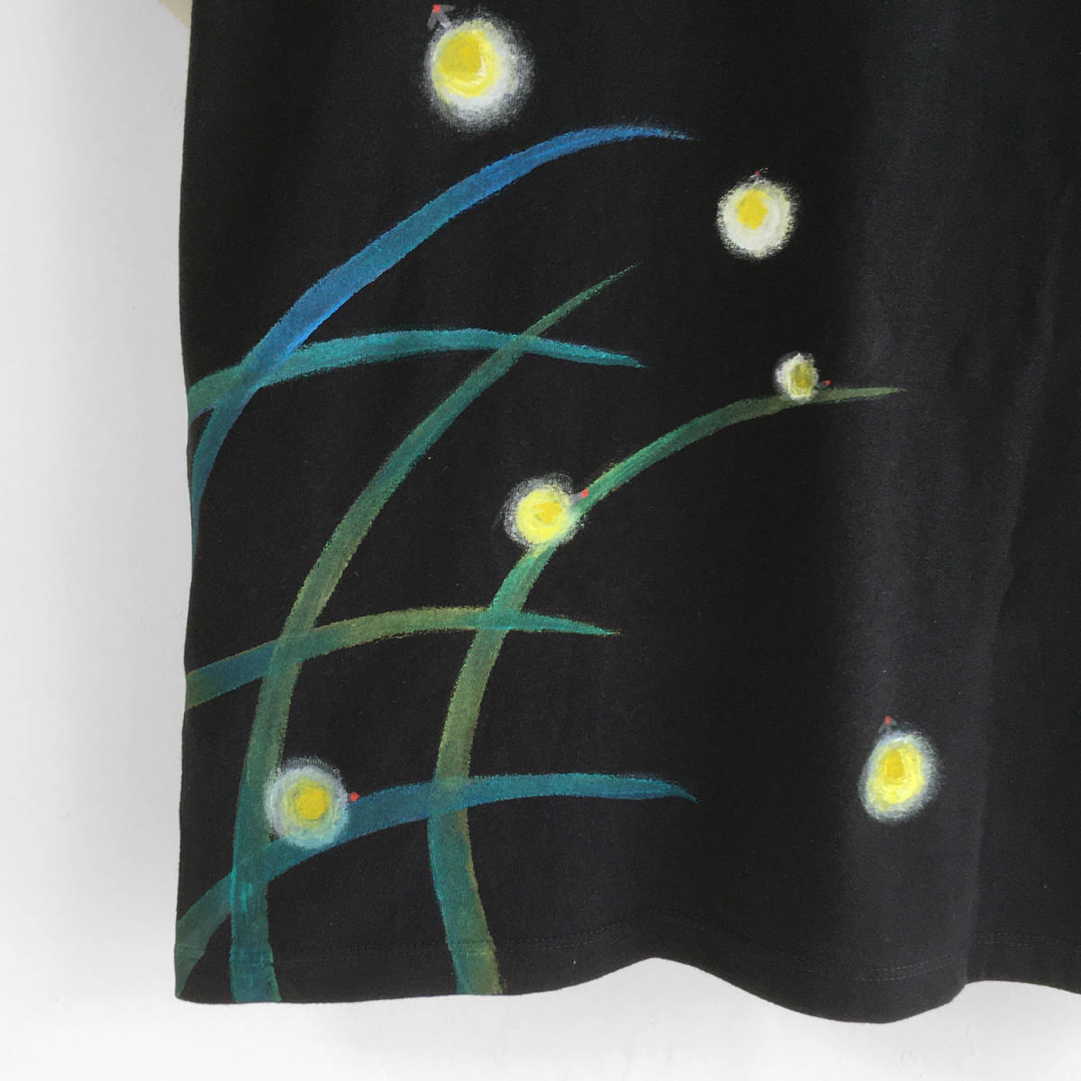 ハンドメイド 手描きTシャツ Tシャツ ホタル柄 手描きTシャツ 手描きで描いた蛍の光のTシャツ | |||