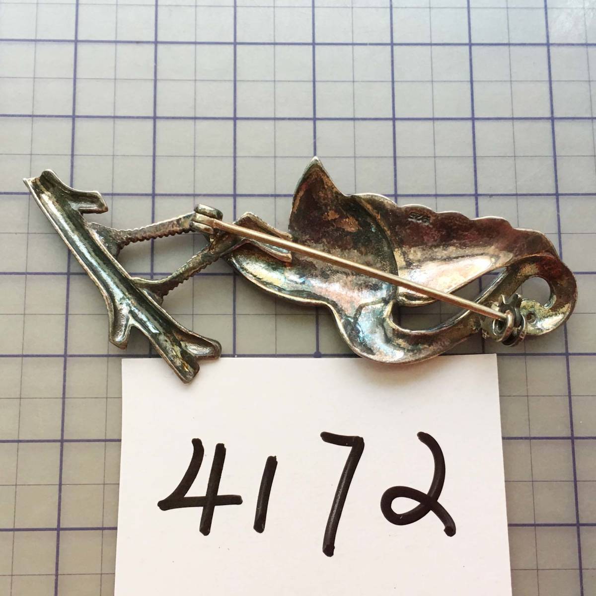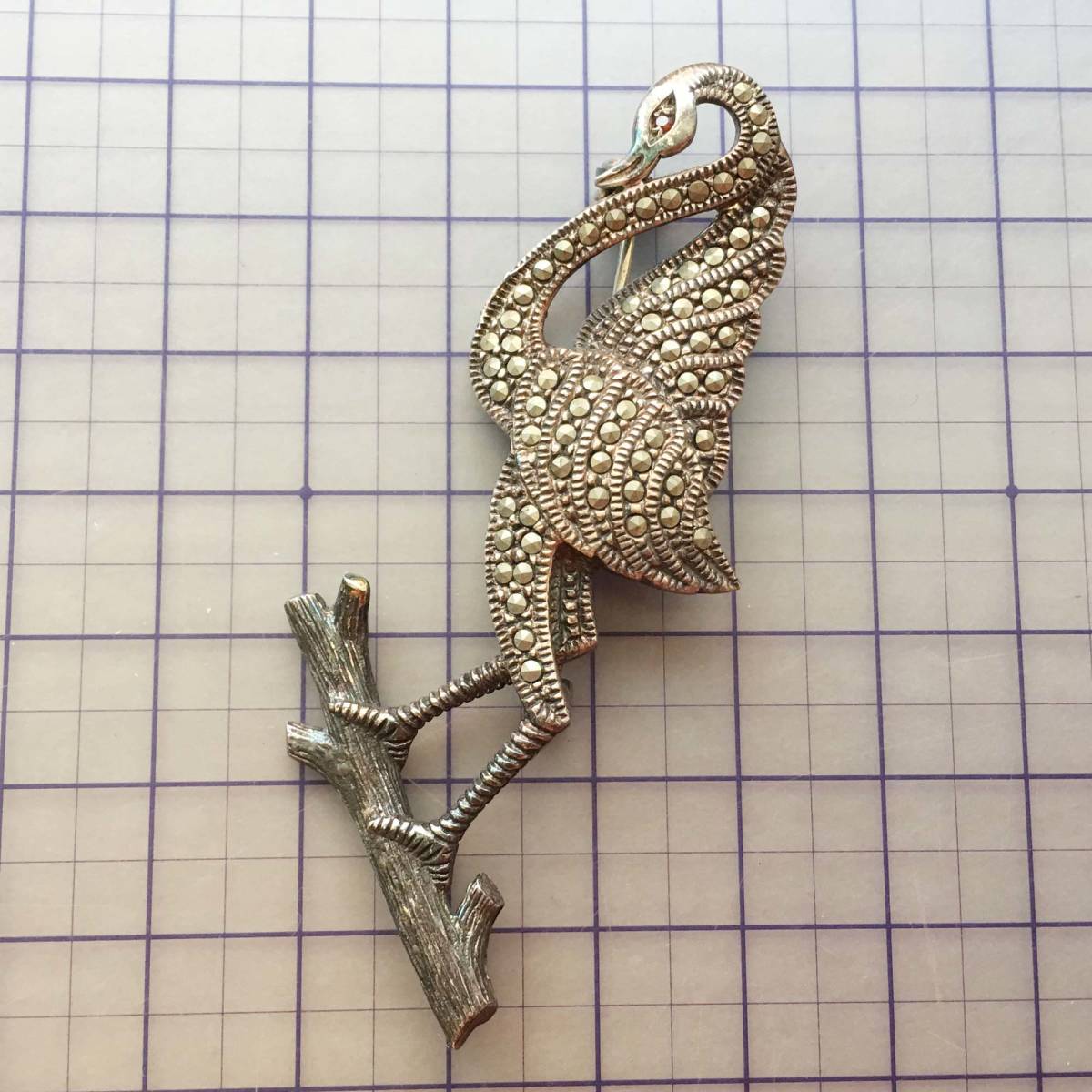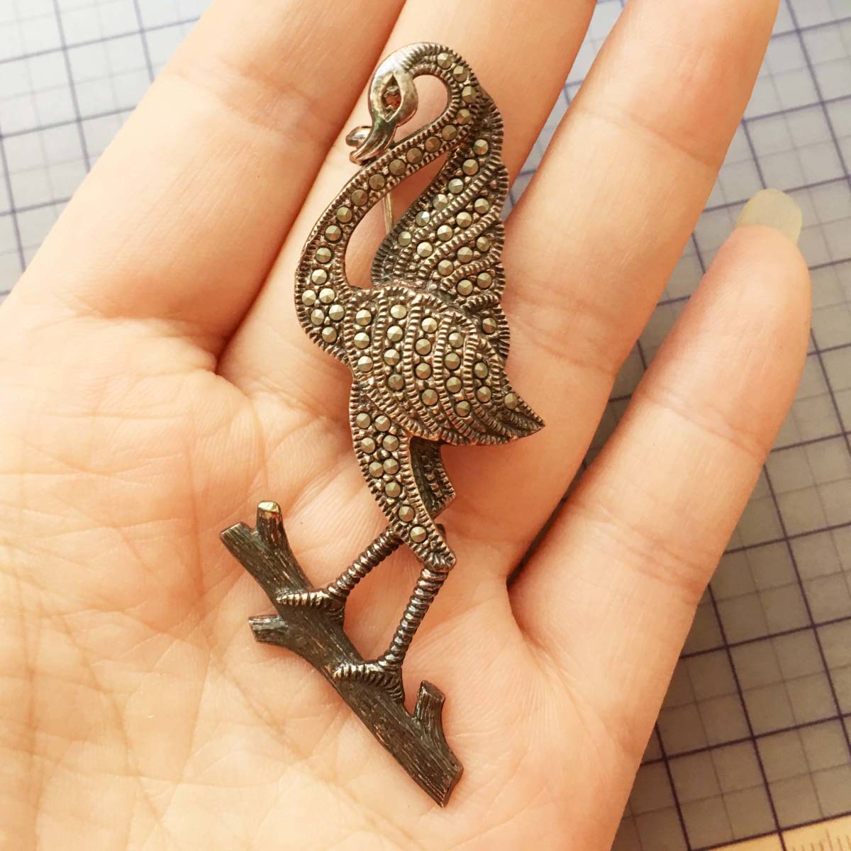 美品 天然ガーネット マルカジット 鶴 925シルバー銀製 ブローチ NO.4172