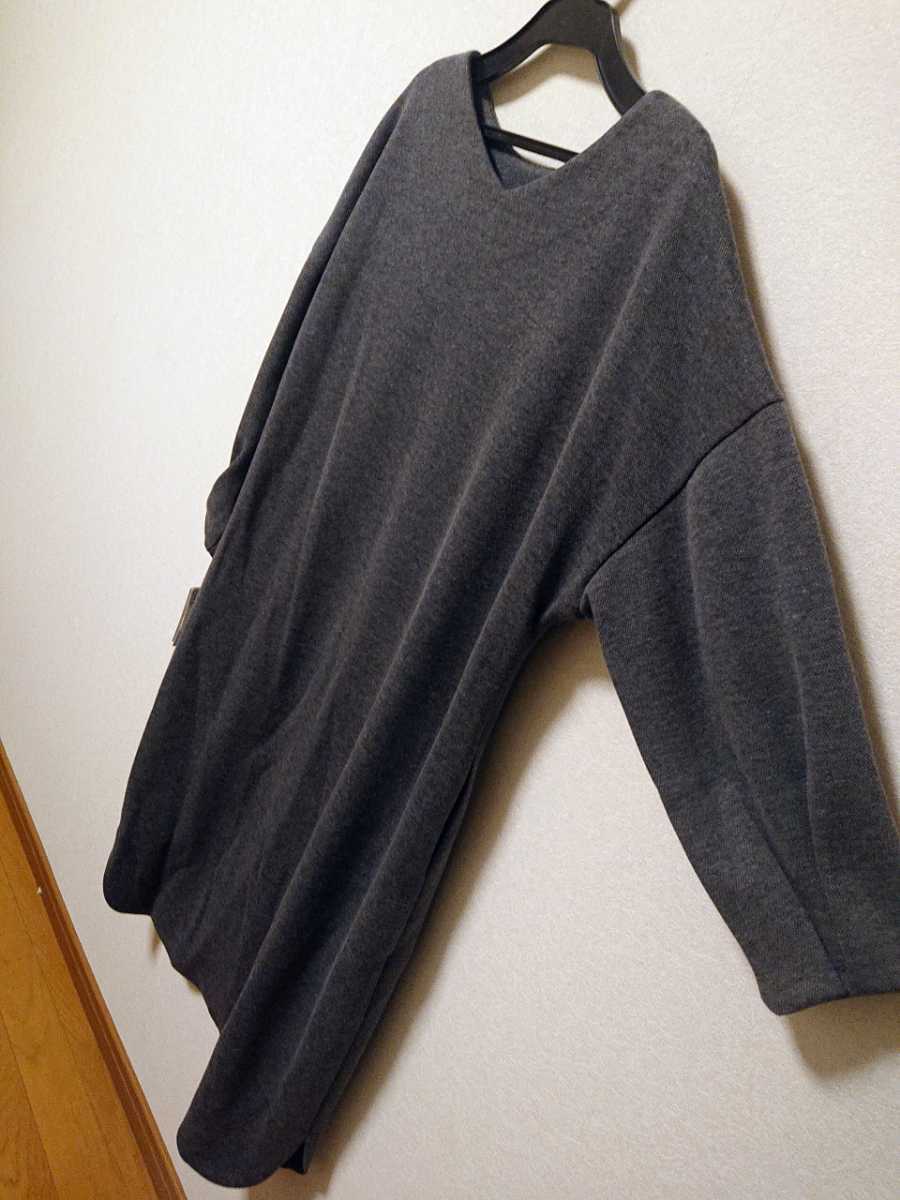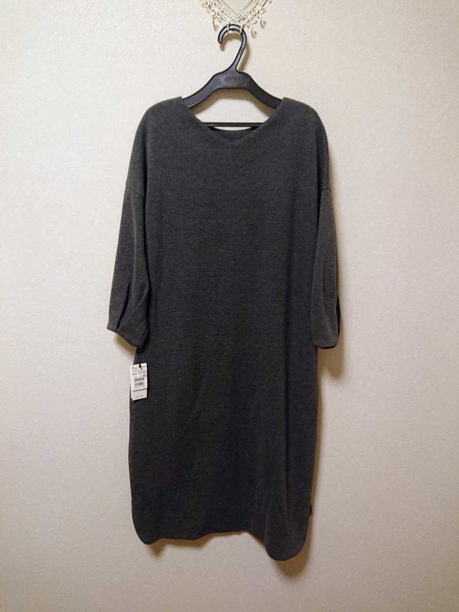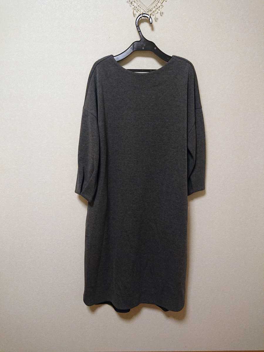 ■ グランターブルのゆったりとした七分袖クルーネックワンピース、お色はグレーです