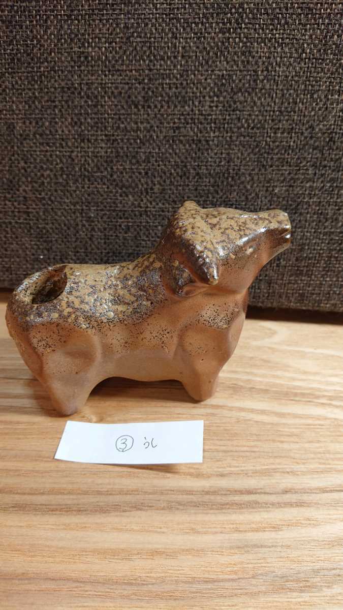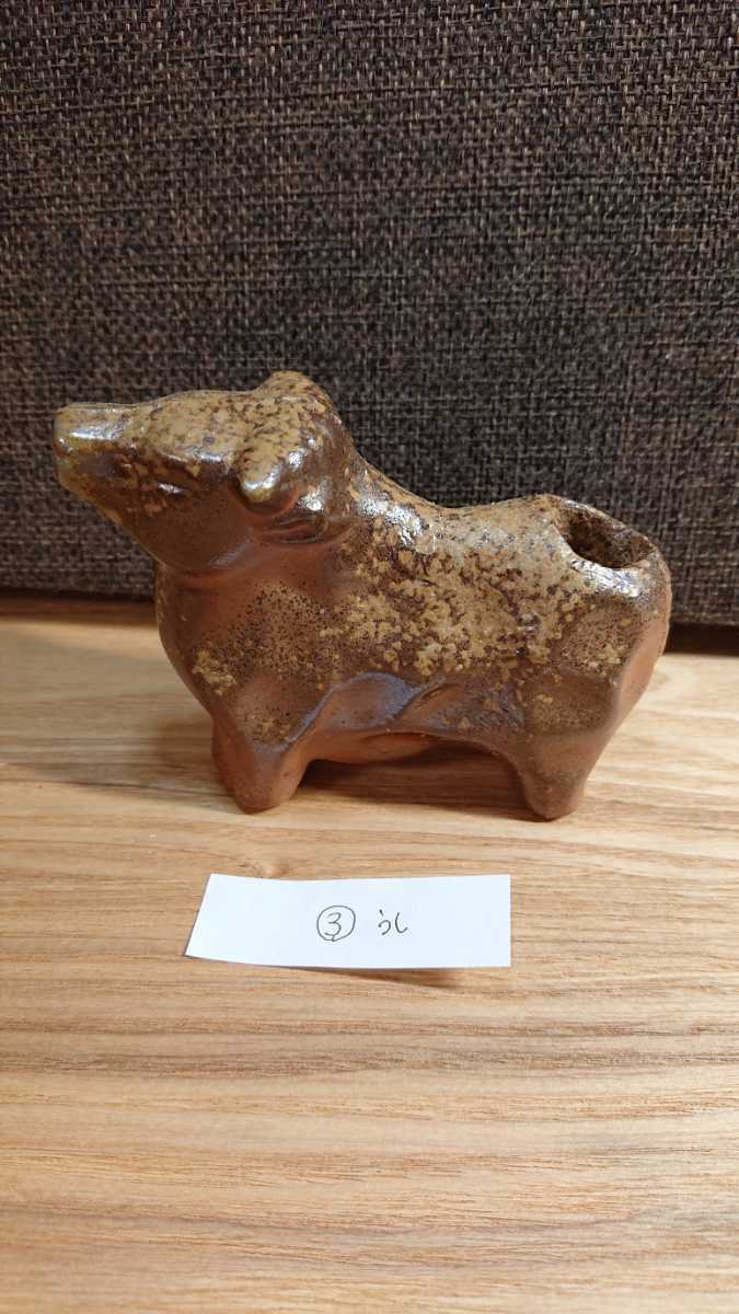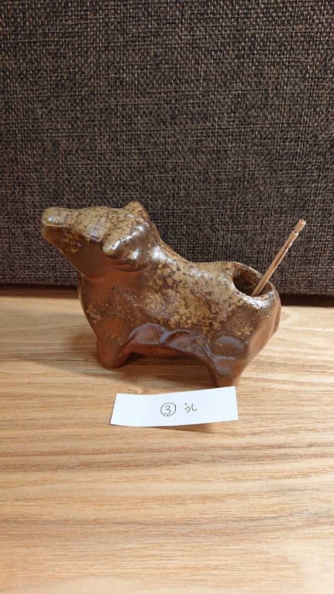 備前焼の干支の丑(うし)のようじさしです。