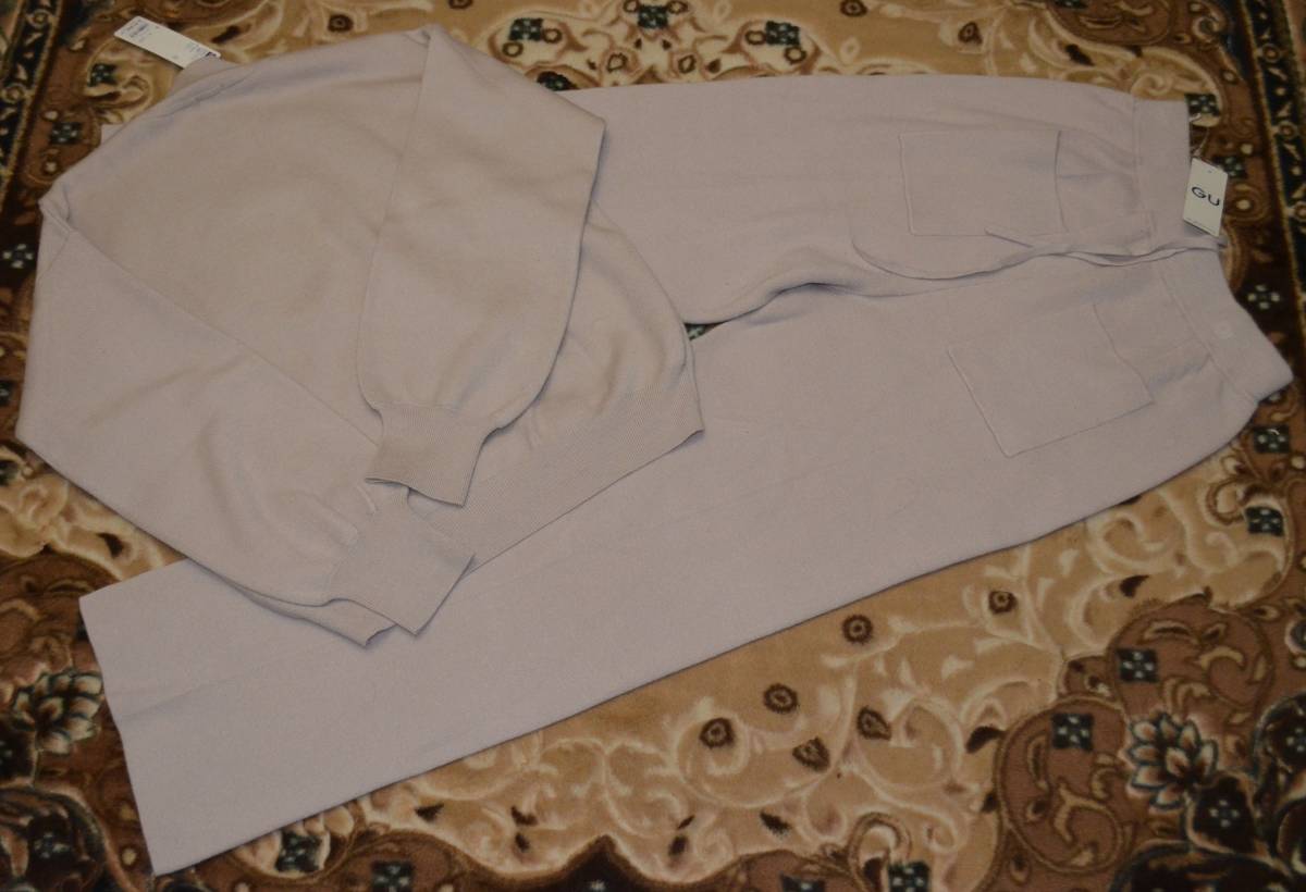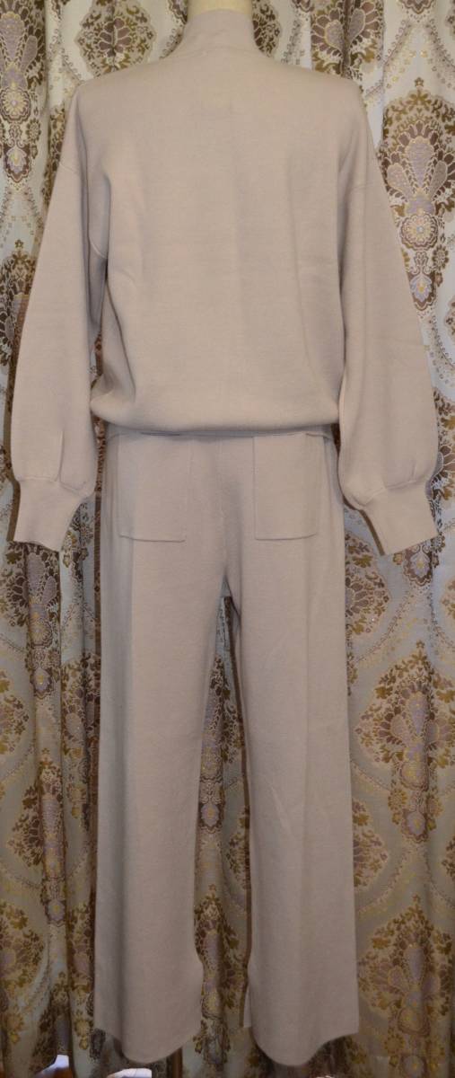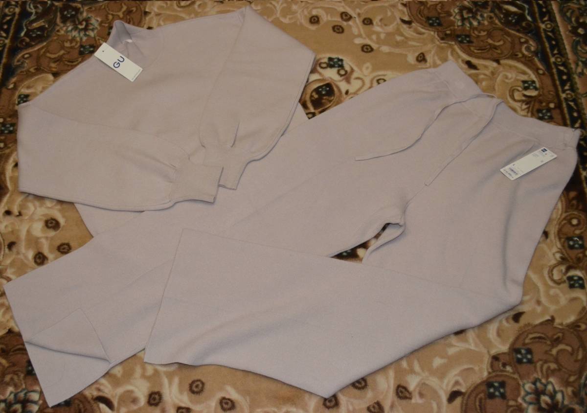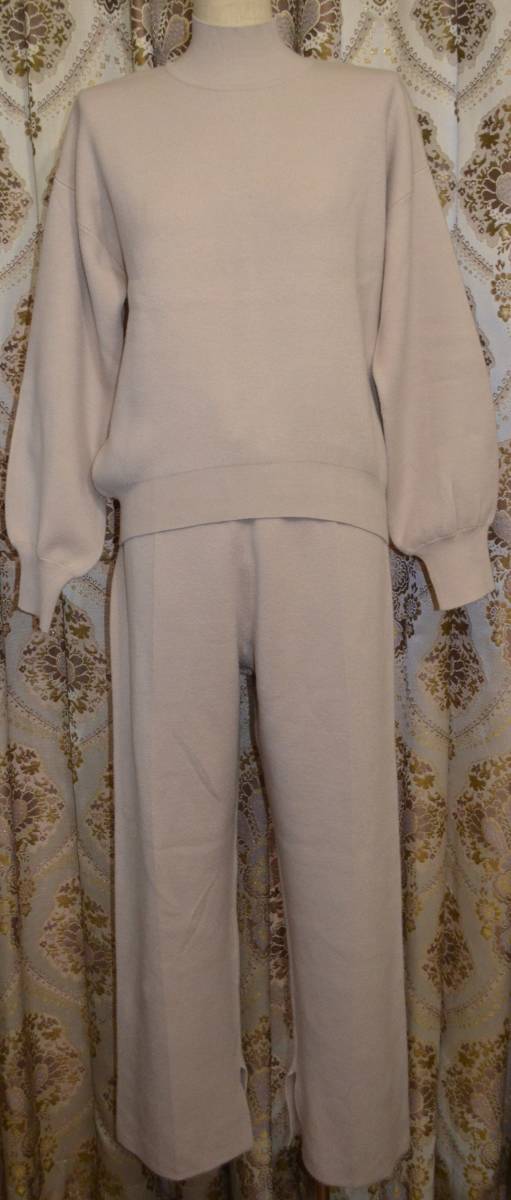 03【新品タグ付】*GU ジーユー スウェットライク 長袖ハイネックセーター ニットスラックス セットアップ ベージュ L 送料無料