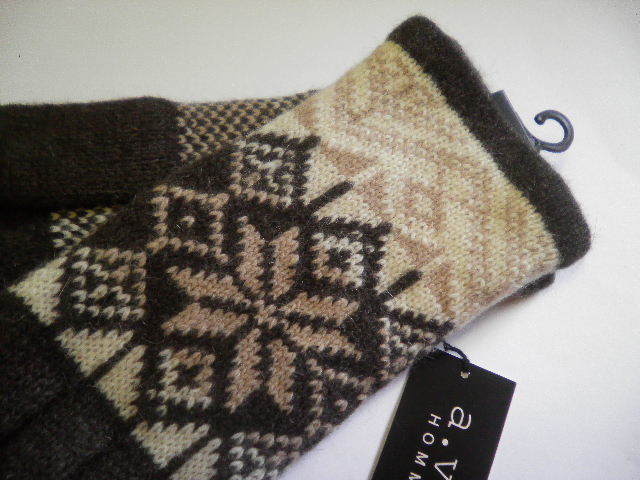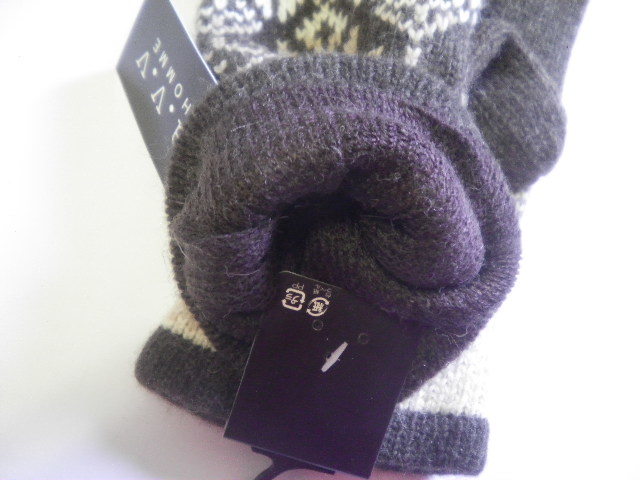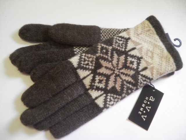 商品 情報 | ☆新品 ☆ロゴマーク付きです!!(モニター環境により色が写真と少し異なる場合があります) ☆カラー ダークブラウン系ベースに柄 ☆素材 ウール・ナイロン made in china ☆平置きサイズ *手首~中指の先 約 25cm *手首の幅 約 9、5cm 小さめです※参考程度に (測る場所により多少の誤差が生じます) ☆ブランド a.v.v アー・ヴェ・ヴェ(正規ライセンス商品) |