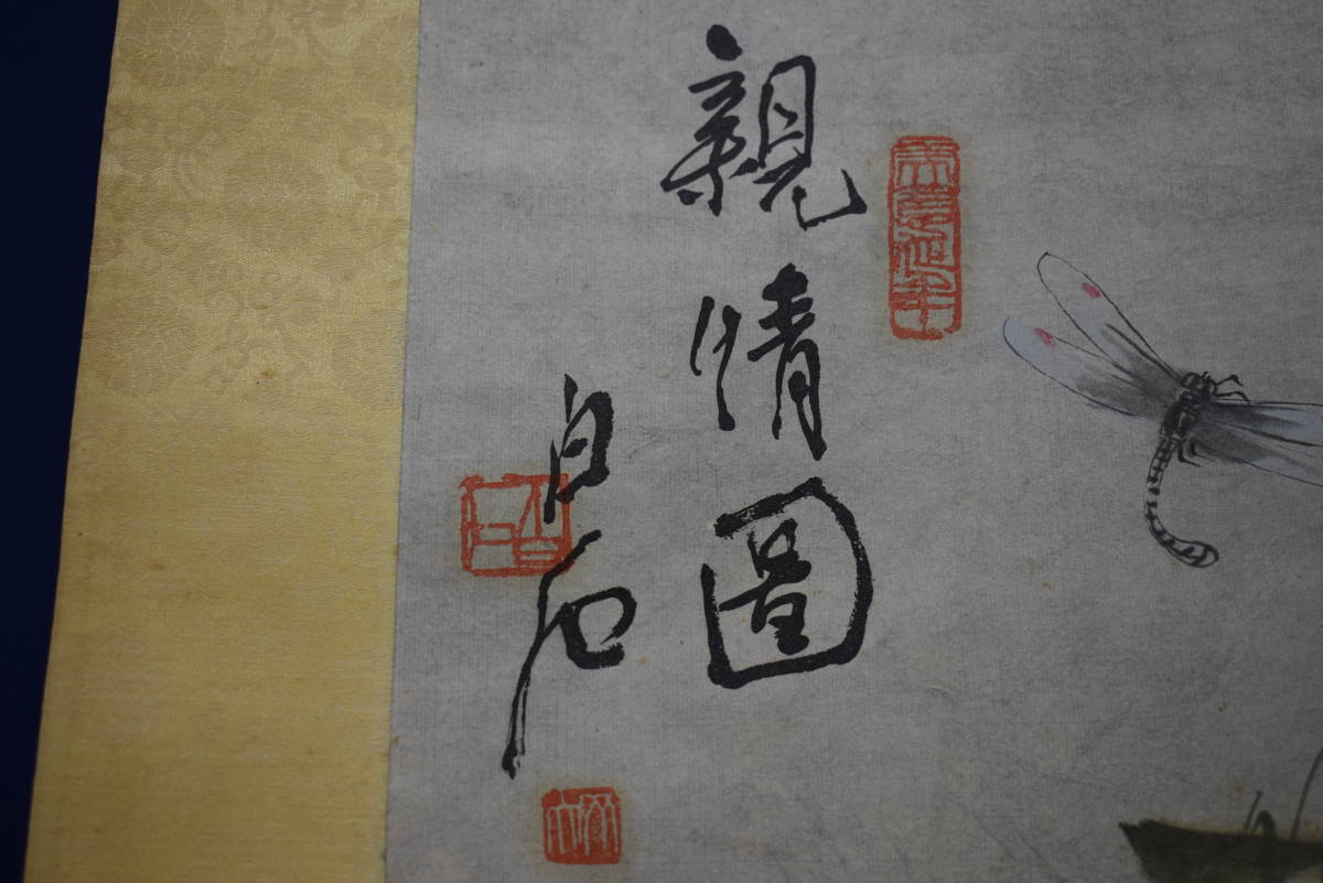 【複製】//斎白石/斉白石/親情図/鶏親子図/工芸/布袋屋掛軸HH-791
