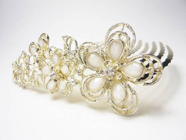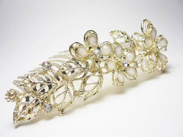 スワロフスキー フラワー 夜会巻きコーム ゴールド