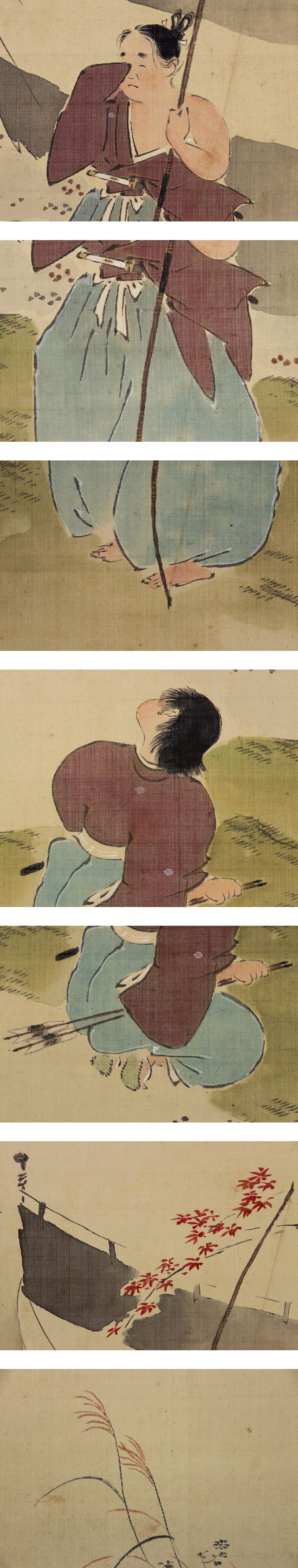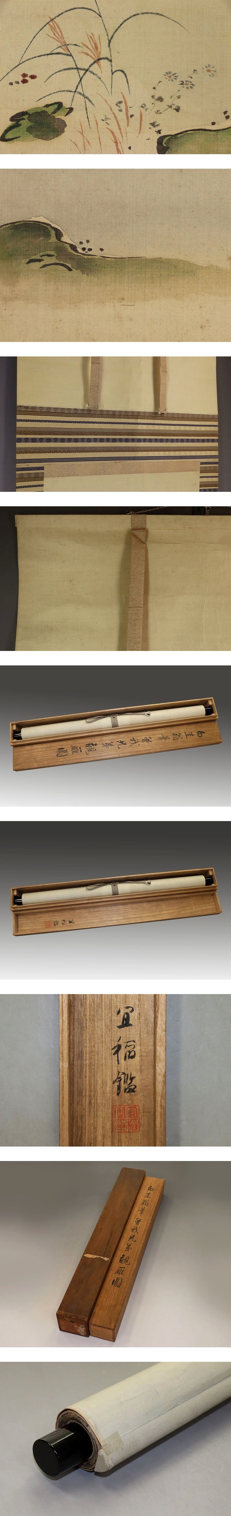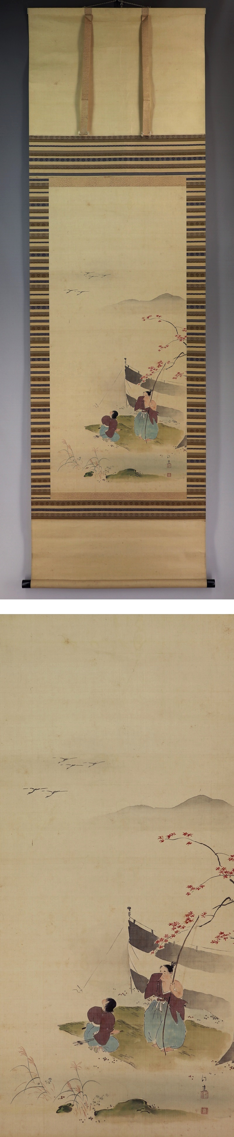 | №2007141【真作】日比野白圭【曽我兄弟観雁図】◆絹本◆識箱◆二重箱◆掛軸 | |