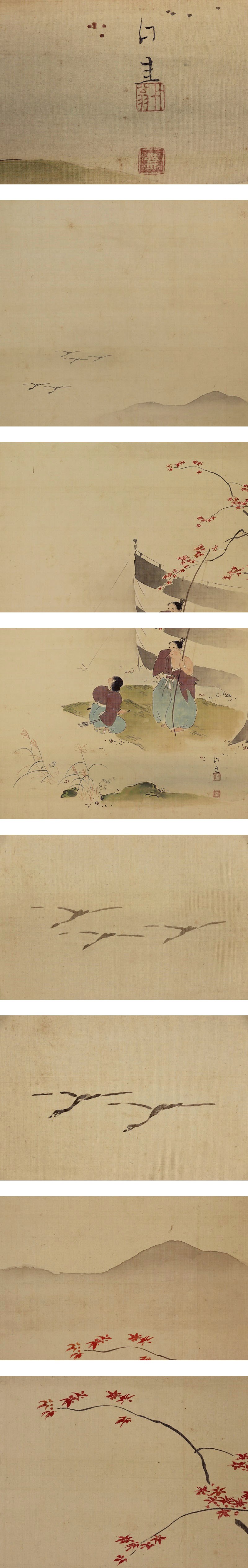 | №2007141【真作】日比野白圭【曽我兄弟観雁図】◆絹本◆識箱◆二重箱◆掛軸 | |
