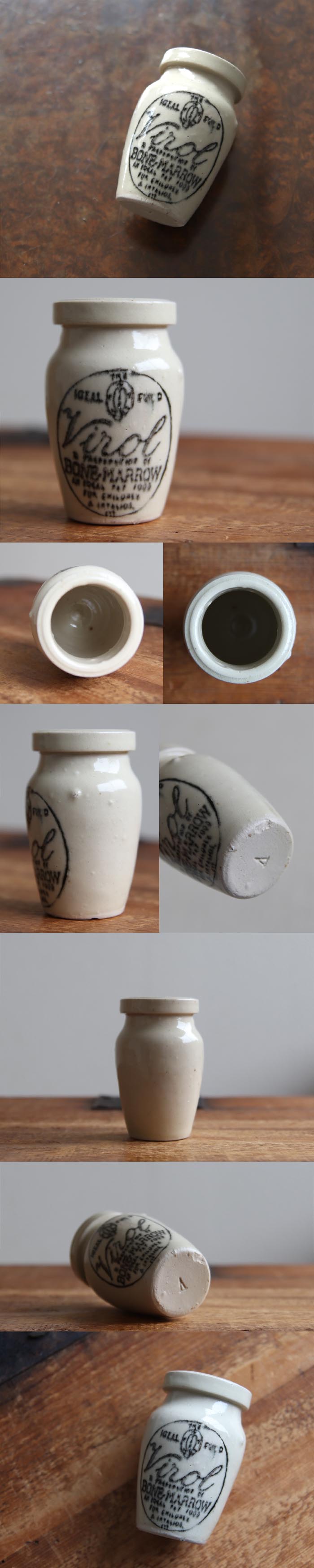 イギリス アンティーク Virol陶器ボトル/ミニサイズ/ヴィロール/フラワーベース/花器/雑貨【人気のヴァイロールボトル】S-417