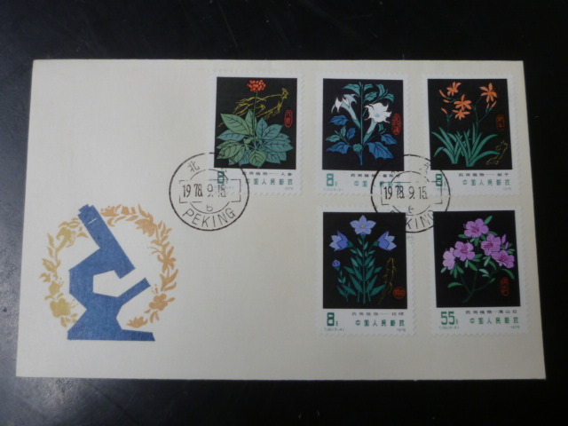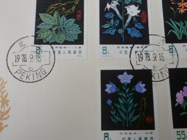 21EA P 新中国切手 FDC 1978年 T30D 薬用植物 5種完 1組 計1通 VF