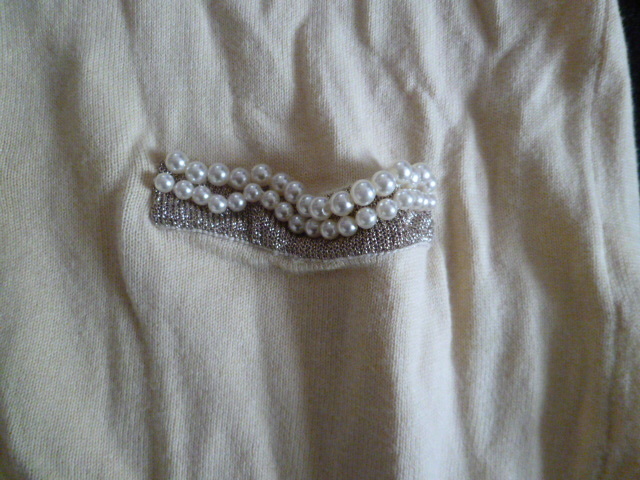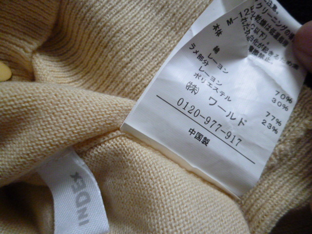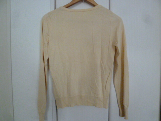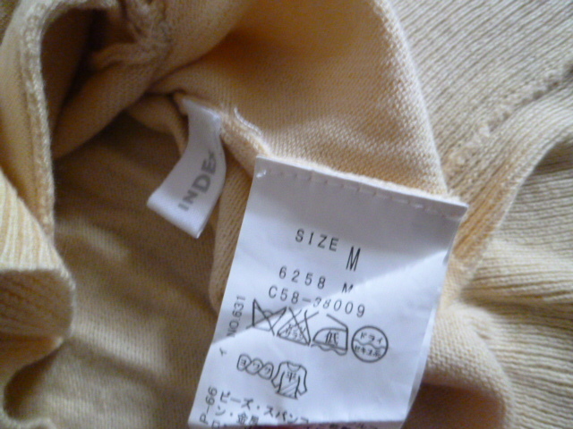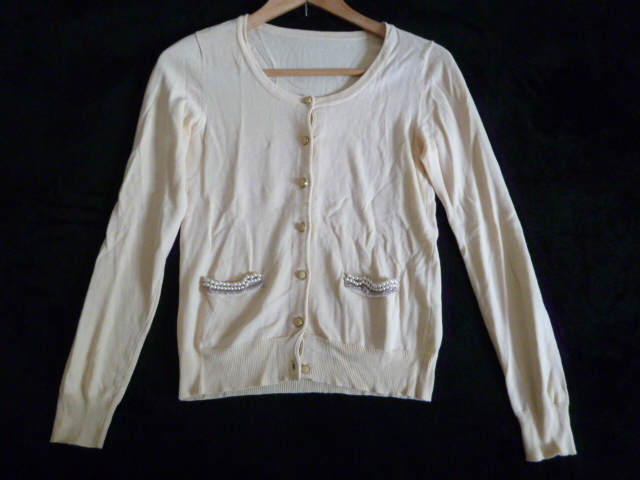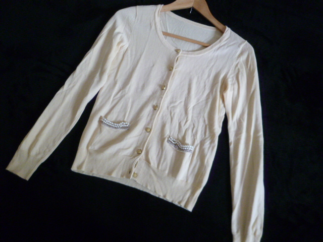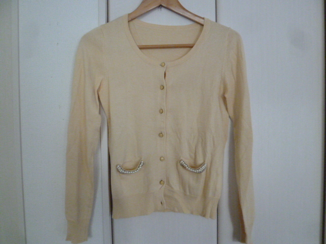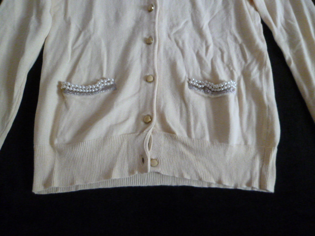INDEX/インデックス○クリーム色系パールデザインポケットニットカーディガンM/ワールド○①K1028
