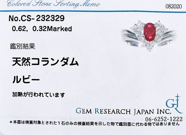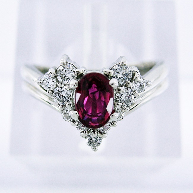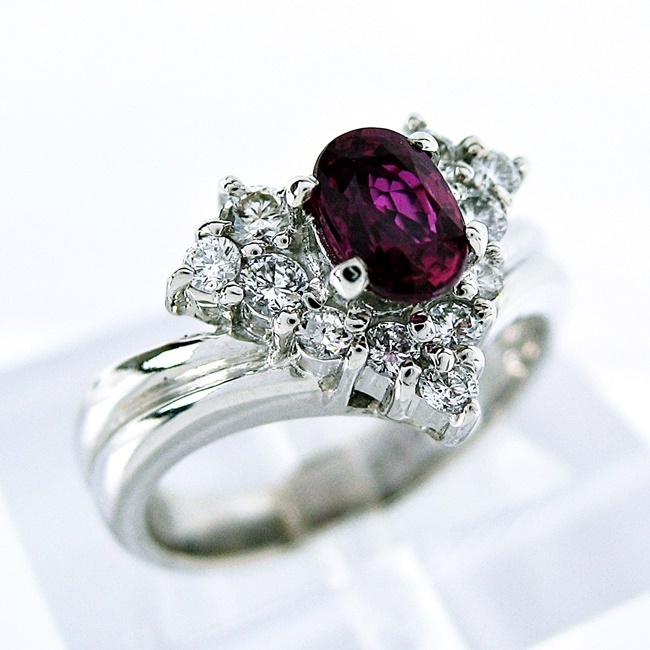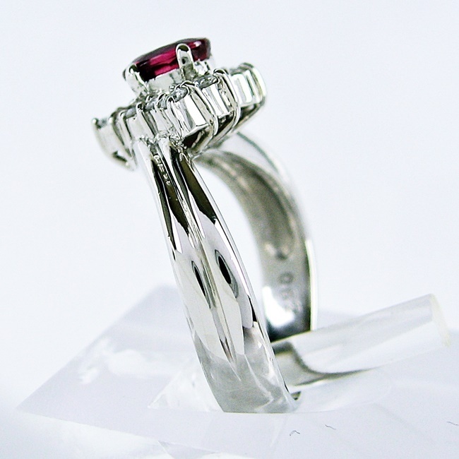*Pt900 *ルビー:0.32ct *ルビーの大きさ(約):5.2mmx3.6mm *ダイヤモンド:0.62ct *モチーフの大きさ(約):縦10.3mmx幅12.4mmx厚6.2mm *アーム幅(約):2.9mm~3.7mm *重さ(約):7.2g *号数:10号 *付属品:ソーティング *ランク:A ※リング下部にサイズ直しの跡があります。 ※詳細はお気軽にお問い合わせください。 (RR)10022573
