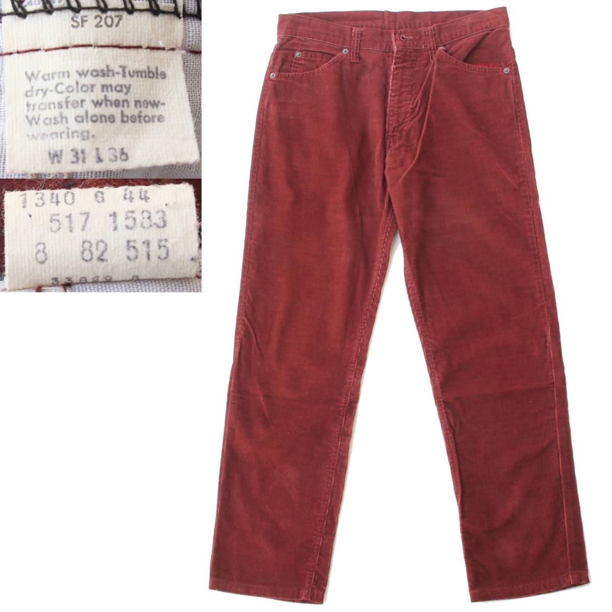 (01213)1982年製LEVISリーバイスMADE IN USAコーデュロイパンツ リメイクW31 (テーパード ストレート517-1583アメリカ米国製ヴィンテージ)