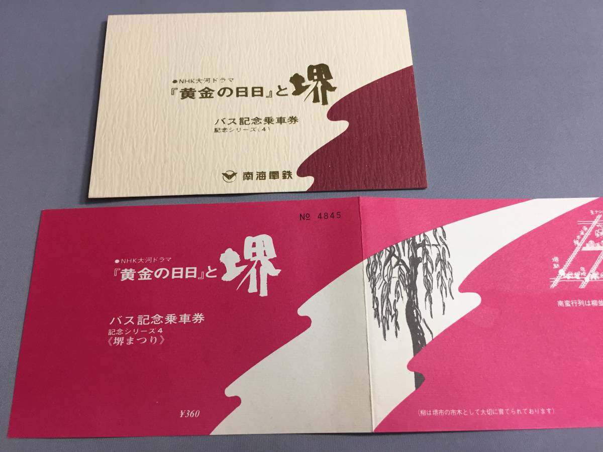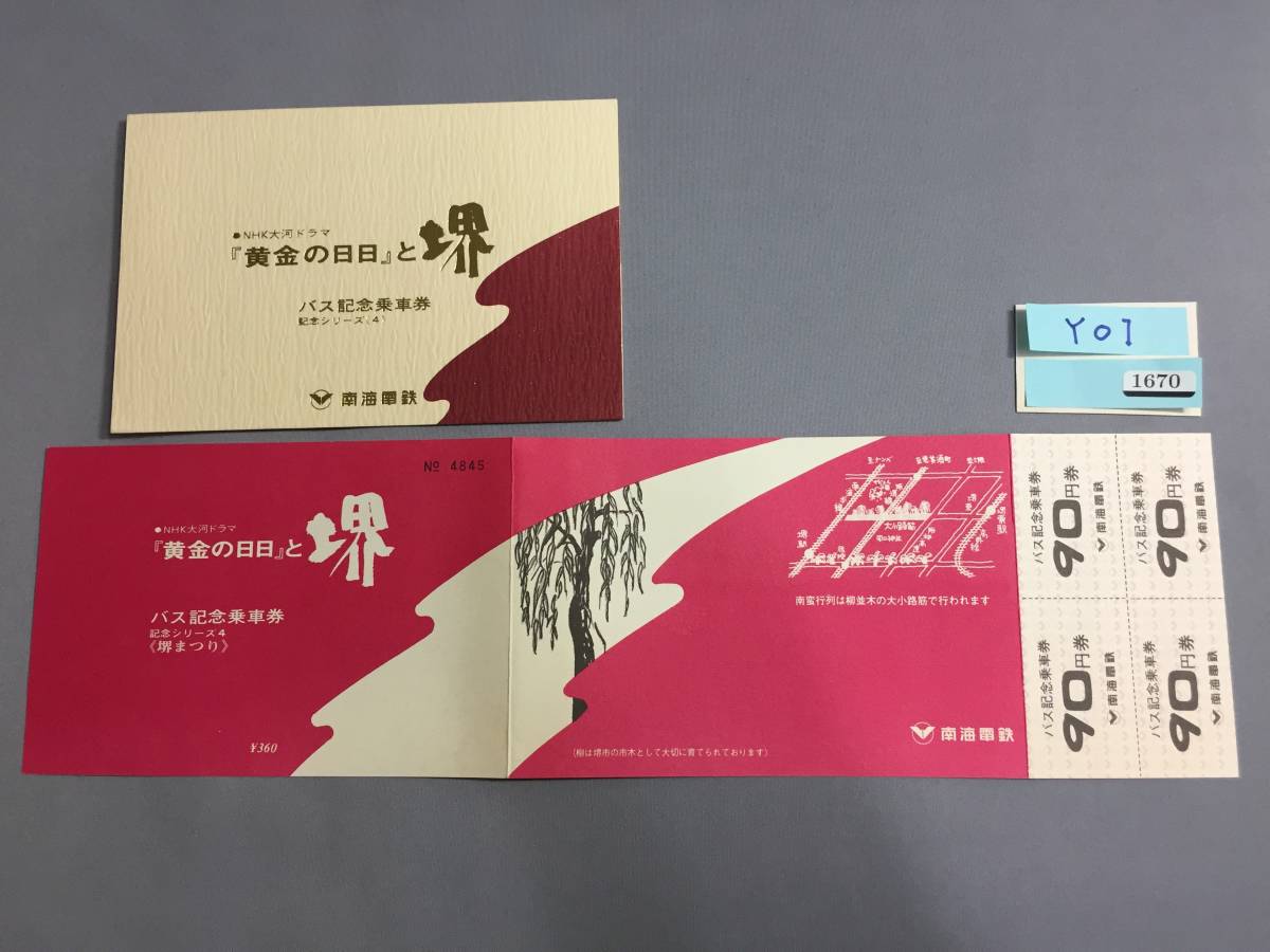 南海鉄道 NHK大河ドラマ「黄金の日々」と堺 記念シリーズ(4)バス記念乗車券4枚【Y01-1670】
