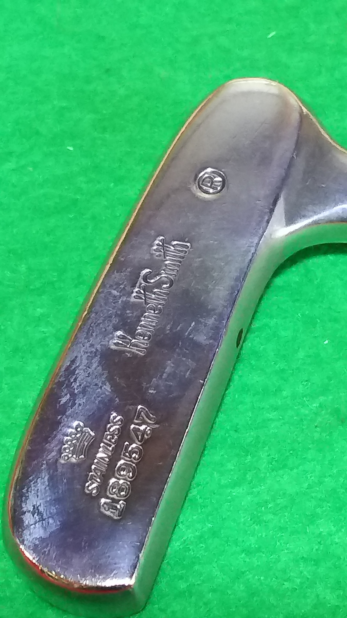 (鳥羽庵)個人品中古オールドケネースミスパター (ゴルフクラブの最高級名器) 全長87センチ ヘッド幅横10センチ高さ2,7センチ 商品状態説明、伝説の名器ケネースミスのパターです。オーダー手造り品です。当時10万以上するお品です。パターカバー別物です。(ロマロ製)是非コレクターの方この機会に入札お願いします。 コースで自慢の1品です。 詳しくは写真参照でお願いします。(下にフォトアップ写真ついてますので参照お願いします。 発送はゆうパックにて発送致します。 落札後ヤフーシステム期間内取引終了お願いします。