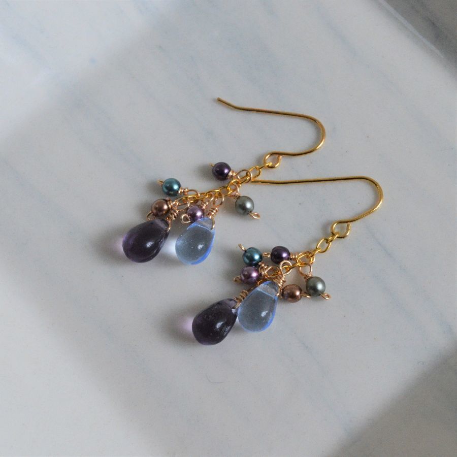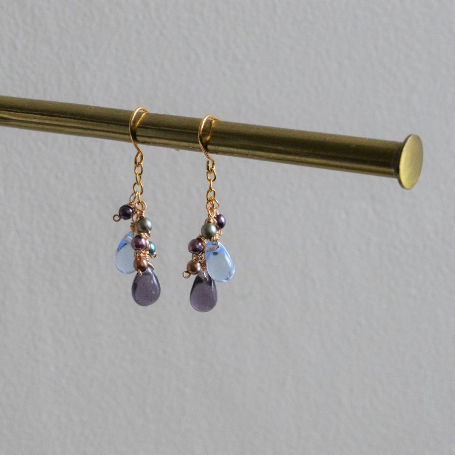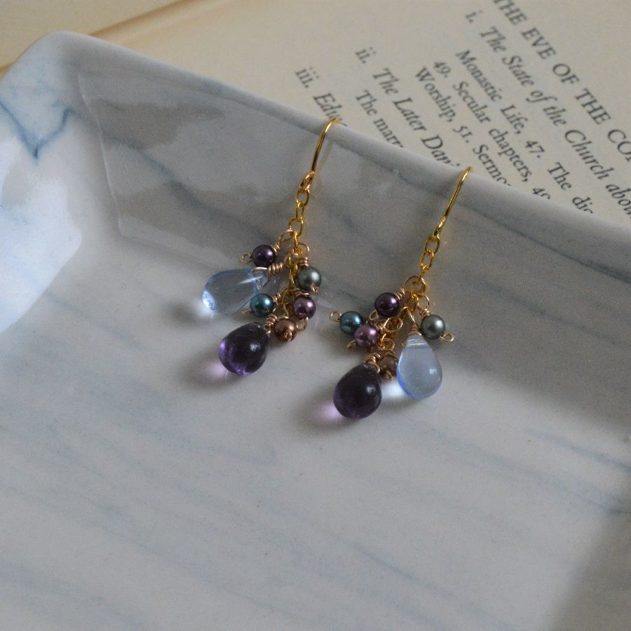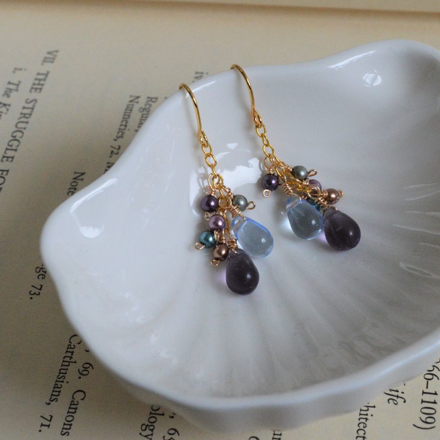 ・商品説明・ パープルとアクアカラーの雫型チェコガラスと色とりどりのパールビーズの組み合わせ。 ゆれるピアスです。 雫チェコガラス:約9mm x 6mm パール :約3mm 全長 :約3cm 金具:真鍮、ゴールドカラープレート *---*---*---*---*---*---*---*---*---*---*---*--- ・コメント・ ノークレーム、ノーリターンでお願いします。 *----------------*---------------*-----------------* My auction* 他にも出品しています!* |