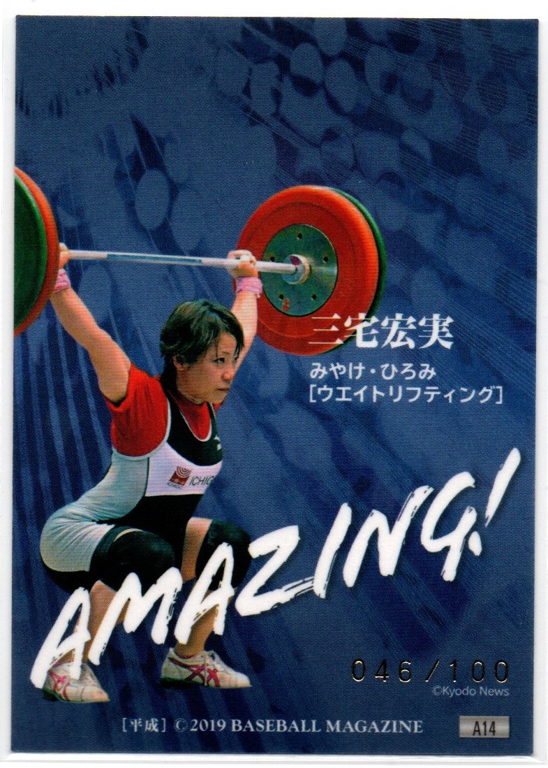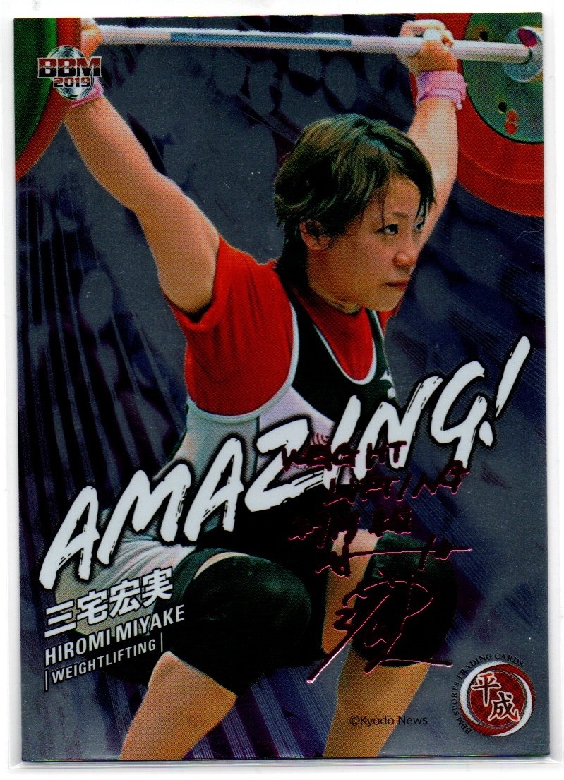 【三宅宏実(ウエイトリフティング)】2019 BBM 平成 チェリーピンク箔サイン版AMAZING!インサートカード [046/100]