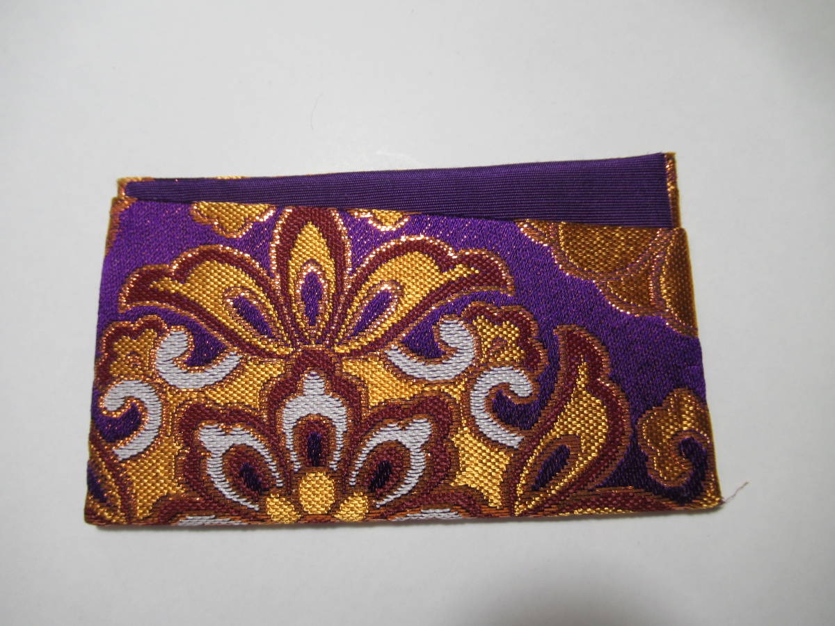 手作り 金襴カードケース 定期入れ 保険証入れ (紫地金柄)