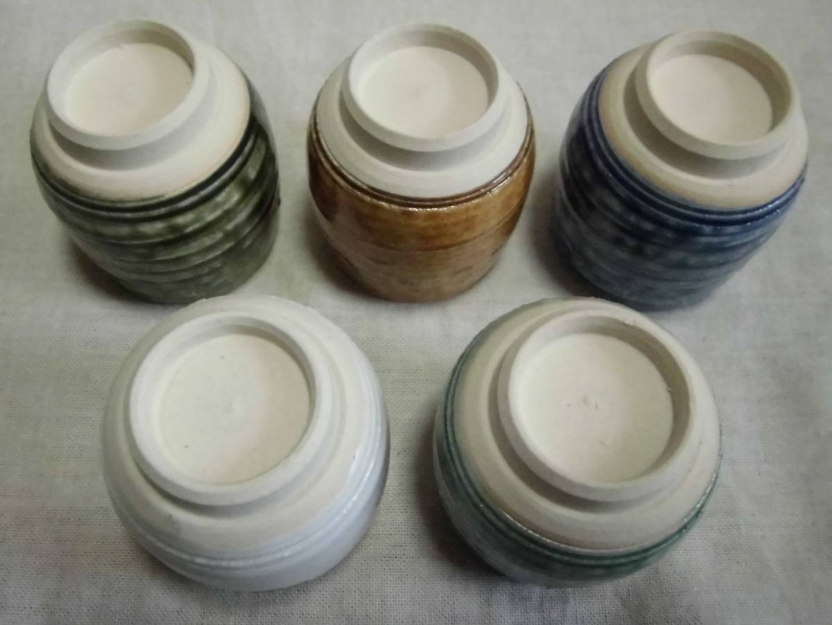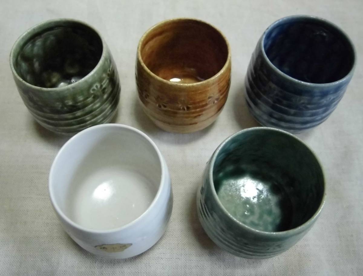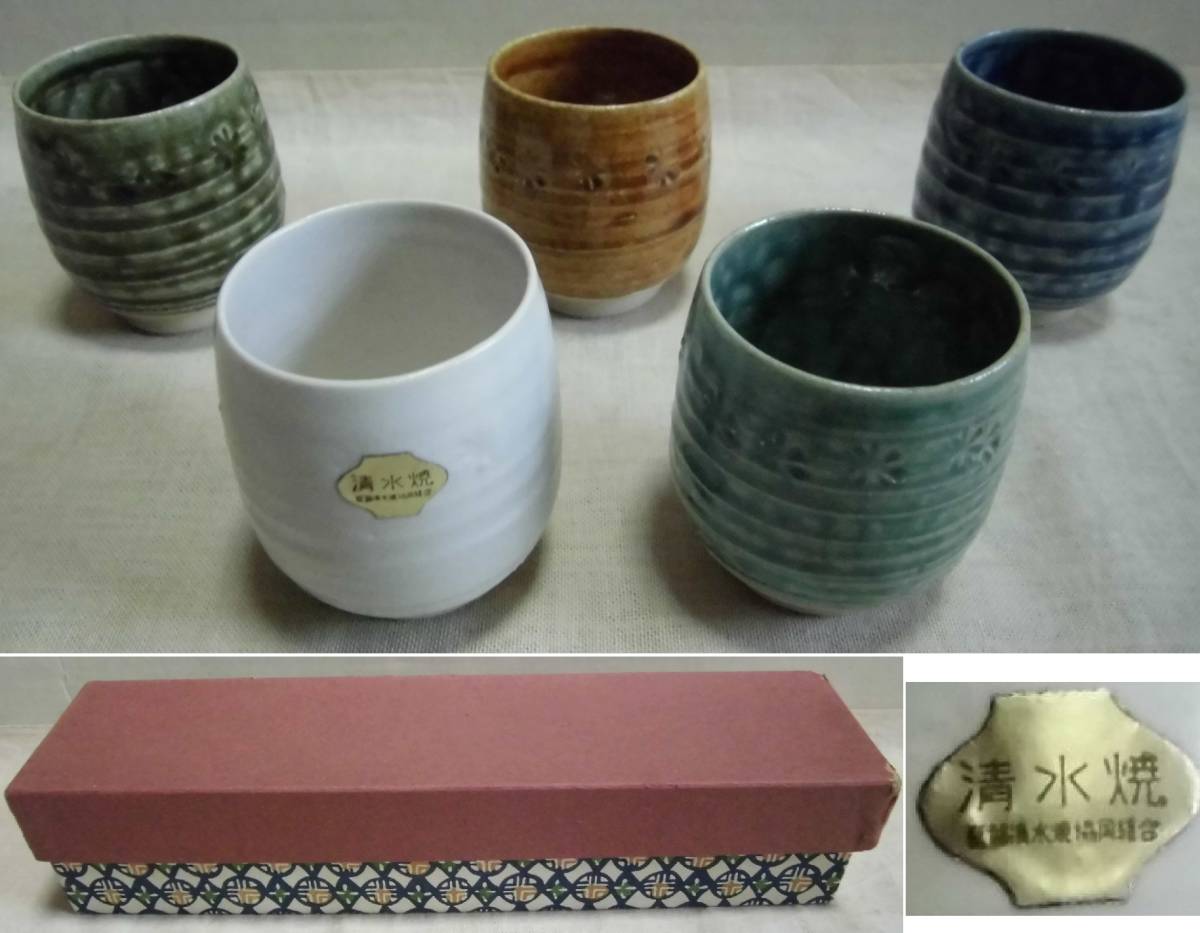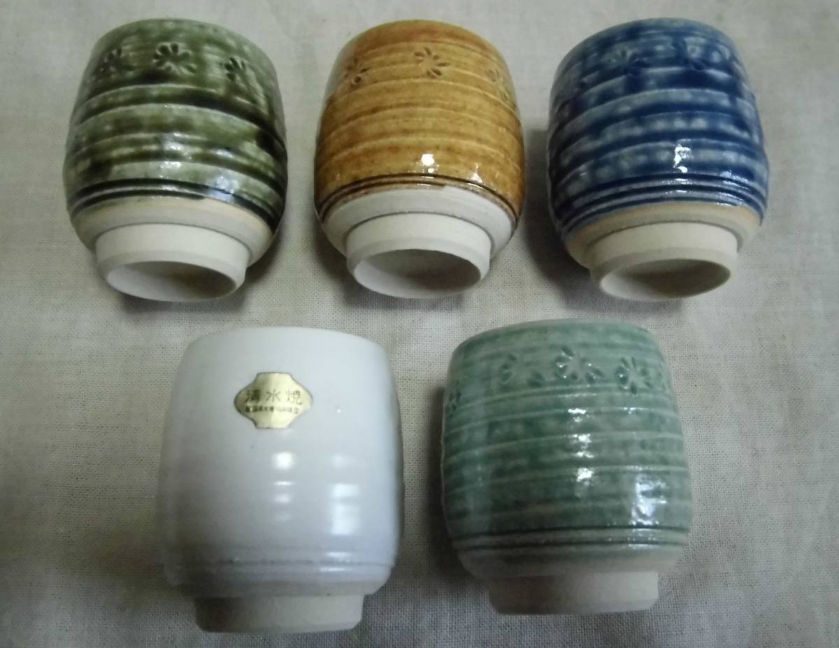 味わい有る お猪口 清水焼 色違い 5客 箱入り です。