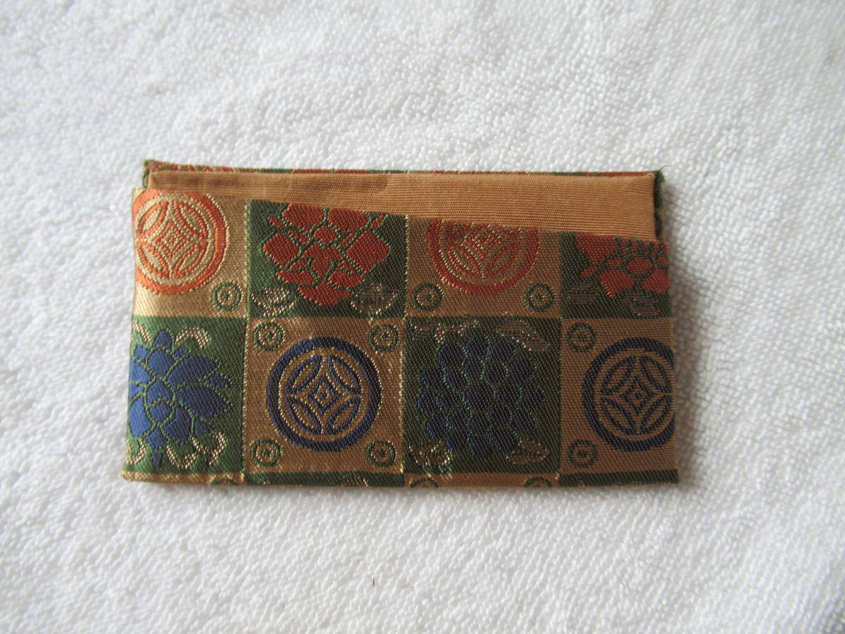 手作り 金襴カードケース 定期入れ 保険証入れ (グリーン系市松)