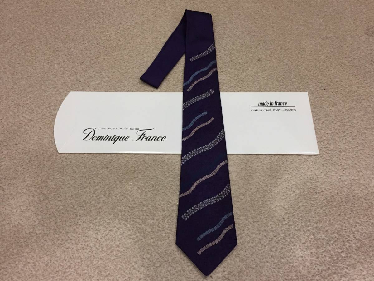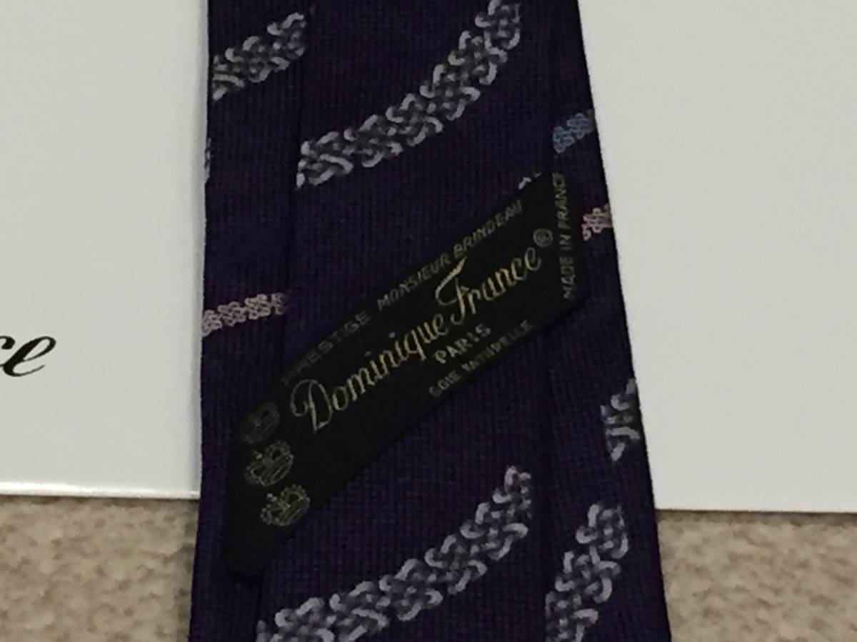 ドミニクフランスのネクタイ シルク100%  スリークラウン  全くの新品未使用  パープルのベースに織柄模様のデザイン