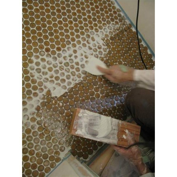 | 商品説明 | 内装壁、床にマッチするカラー目地材です。 目地材のカラー茶色です。 1袋で内装タイルの場合約5平米から8平米の目地詰めが可能です。 施工上の注意点 防汚性能・抗菌効果と、より美しい仕上がりの為に、下記内容に充分ご注意頂きますようお願い致します。 ◎施工前に… ●天候や水比により、多少の色の違いがあります。●8mm以下の目地幅でご使用ください。●湿気の少ない5から35℃の場所で保管して下さい。●ご使用状況、ご使用環境によっては防汚・抗菌効果を充分に発揮しない場合があります。●製品裏面の注意書きも良くお読みください。 ◎施工のポイント セメント系目地材料の場合、施工時の作業内容・周辺環境により、場合によっては色ムラを生じてしまう場合があります。下記内容をご参考に、目地詰め工事を行って頂きますようお願い致します。 1.目地詰め前 ●タイル貼り付け後、施工法に応じた充分な養生期間を取った後、目地詰めを行って下さい。 ※タイル貼り付け直後は、セメントや接着剤中の可溶性分が水分中に溶け込み、目地部に移行して目地材の変色を引き起こすことがあります。下地の乾燥度合にもよりますが、目安となる養生期間は概ね下記の通りです。特に積み上げ張りの場合、貼り付けモルタルの水分が抜けにくく、色ムラを生じ易いため、モルタルの乾燥状態に注意してください。 (1)積み上げ張りの場合…約3日間 (2)その他のタイル張り工法…約1日間 ●有機質接着剤によるボード下地への陶器質タイル張りなど、タイル目地部の極端な乾燥が予想される場合、必要に応じて水湿しを行って下さい。 ※目地部が極端に乾燥している場合、セメントの硬化に必要な水分が奪われて、正常に固まらない場合があります。 2.目地材の混練 ●混練水量は指定量を守り(目地材1kgに対して水280?300cc)、均一になるまで良く撹拌して下さい。混練水量過多…目地切れ、色ムラの原因となります。混練水量不足…硬化不良、施工性悪化による充填不良の原因となります。混練不良…硬化不良や色ムラの原因となります。※練り始めは固く感じますが、良く撹拌することで徐々に柔らかくなります。 ●水以外の混ぜものは原則として行わないで下さい。 ※色ムラや硬化不良の原因になります。 ■床タイルなど、目地幅が5mm以上の磁器質タイルに目地詰めされる場合は… ●混練水量を少なめにし、目地材を固めに練り上げて下さい。(目地材1kgに対して水約250?280cc程度) ※タイル自体の吸水が低く、目地部の体積も大きいため、水分が抜けにくく、目地部のしまりが遅くなる傾向があります。 3.目地詰め ●ゴムごてで、目地の底部までしっかり隙間を埋めるように目地詰めを行って下さい。 ※充填不良は目地の強度不足を招き、ひび割れや剥がれの原因になります。また、乾きムラを起して色ムラの原因となることもあります。 4.仮掃除 ●目地詰め後、目地材が乾ききる前に、乾いたウェスや固く絞ったスポンジでタイル表面に残った余分な目地材を拭き取って下さい。 ●目地材の詰まり具合を調整しながら、凹部は付け送り、凸部は削り取るようにして目地深さを均一に仕上げます。 ※スポンジに水を含ませすぎると、供給水量のバラツキにより色ムラを生じることがあります。 ※タイル表面に残った目地材は、長時間経過すると取れにくくなりますので早めに拭き取って下さい。 5.目地仕上げ(目地押え) ●目地材の水分が引き、しまってきた状態で目地押えを行って下さい。 ※目地押えを行うことにより、表面が平滑になるばかりでなく、色ムラも起きにくくなり、美しい仕上がりが得られます。 ※床タイル(磁器質)の場合、上記のように目地材が乾きにくいため、目地材がしまるまでに多少時間が掛かります。 ●最後は乾いたウェスなどでタイル表面をきれいに拭き上げて下さい。 ※水分を目地表面に多量に残しますと、乾きムラを起こし、色ムラを生じることがあります。 販売単価 1袋(NET5kg入り)価格です。 |