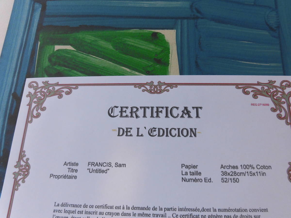 サムフランシス Sam Francis ★限定数販売★販売証明書付属★ リトグラフ52/150★エスタンプ
