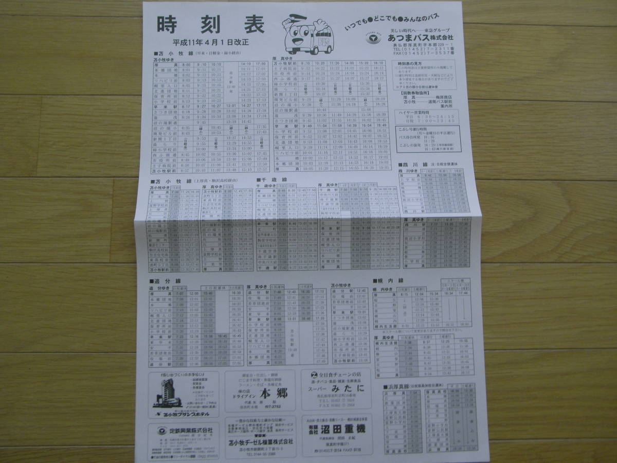 あつまバス時刻表 平成11年4月1日改正・あつまバス運行系統図