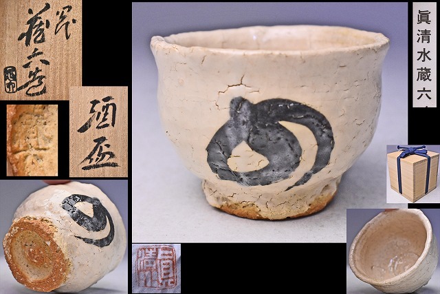 真清水蔵六 4代 ★ 鉄絵ぐい呑 ★ 共箱 共布 栞 ★ 縁:小山冨士夫( 古山子 )★ 上手作 ★ 京焼 ★