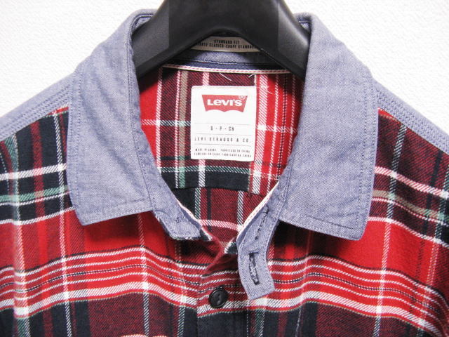 美品 リーバイス LEVI'S ネルシャツ S チンストラップ マチ付き 猫目ボタン 3本ステッチ 赤耳 ビンテージデザイン