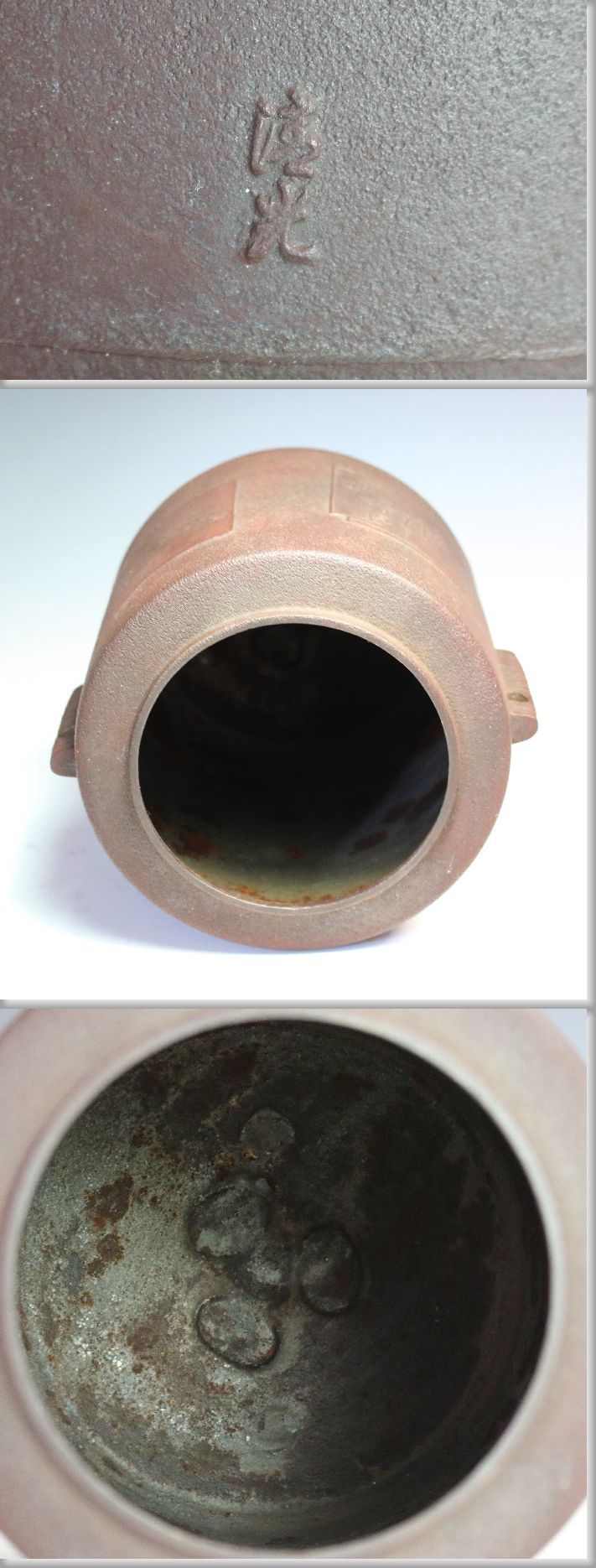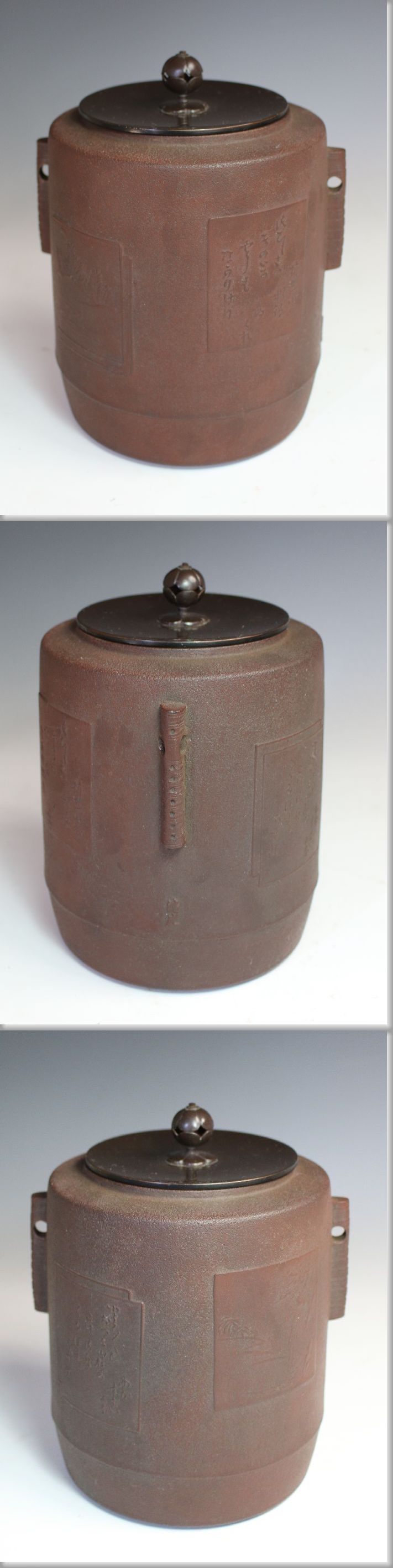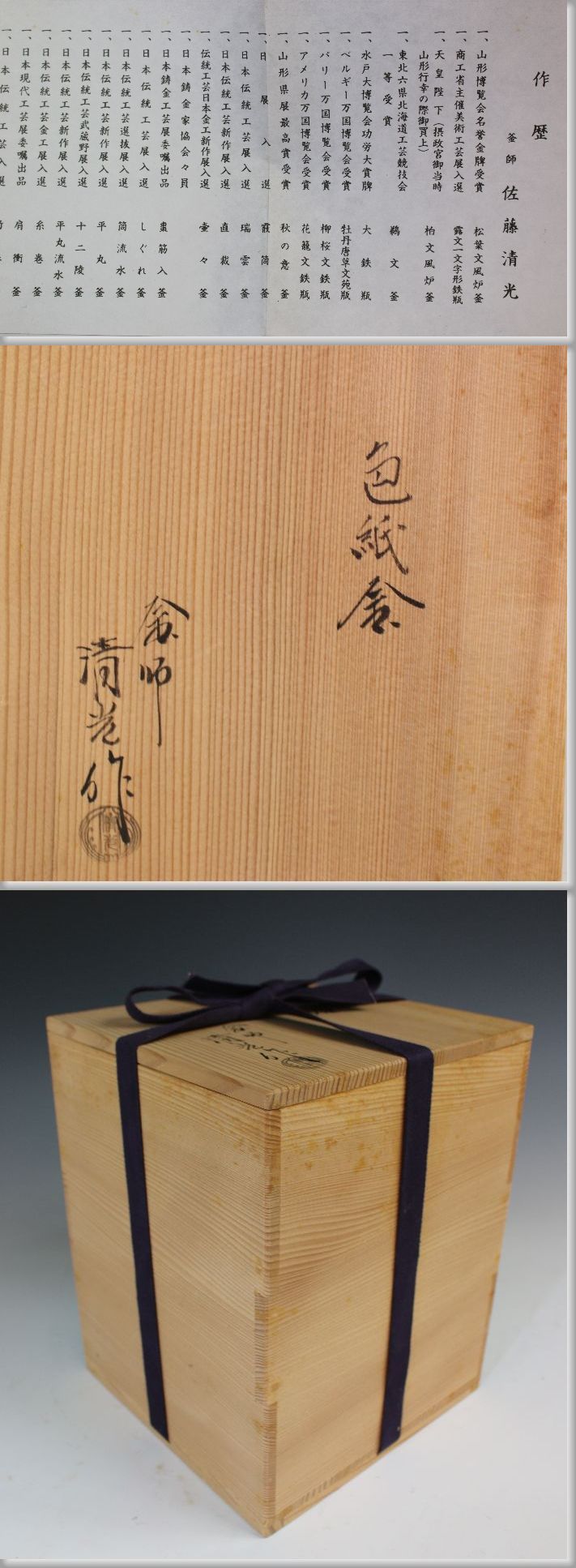 ■■ 茶道具 釜師・佐藤清光 色紙地紋筒釜 共箱 ■■