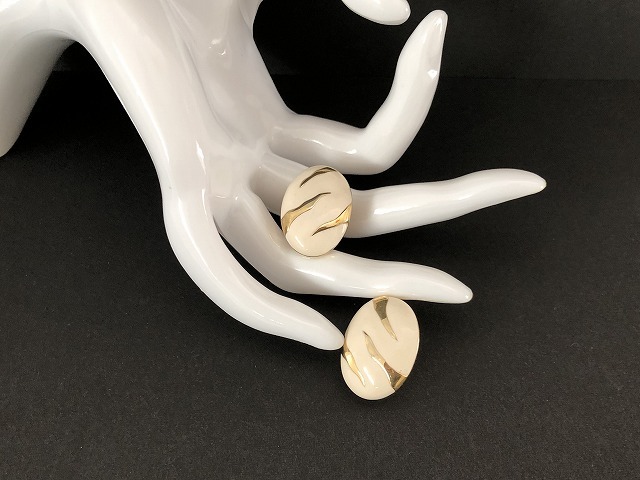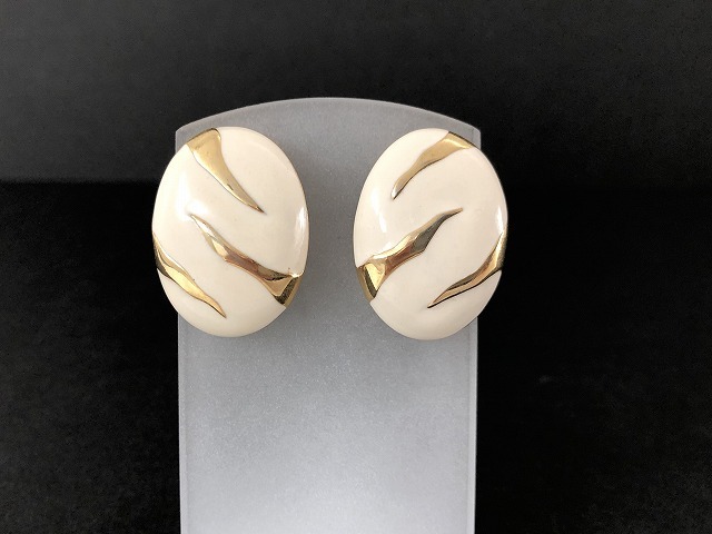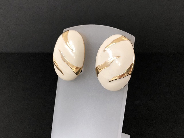 アイボリー系エナメルカラーの素敵なデザインのイヤリングです