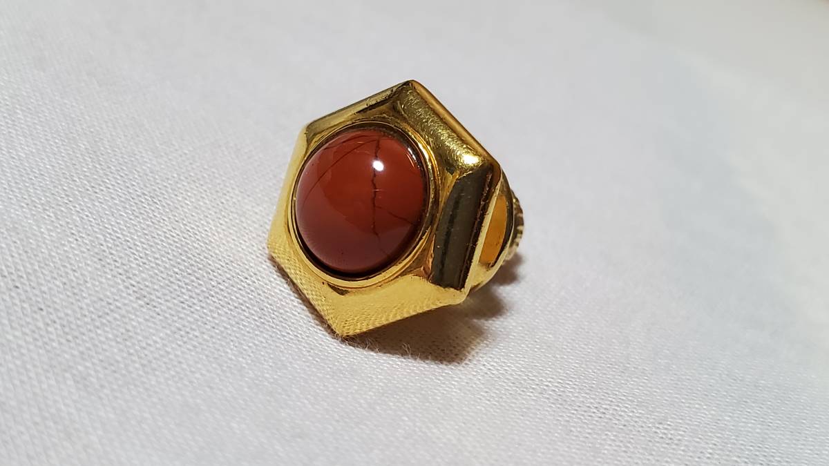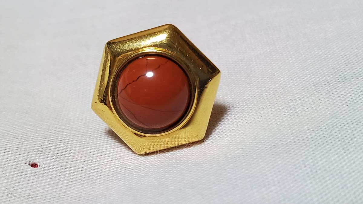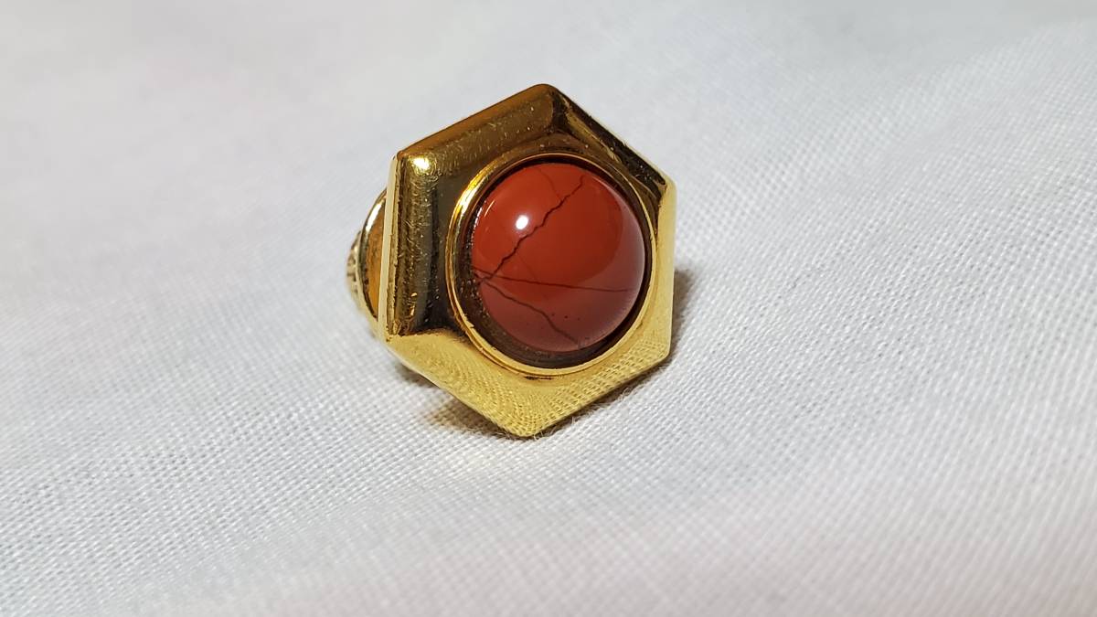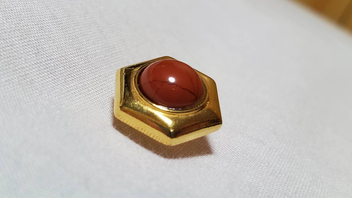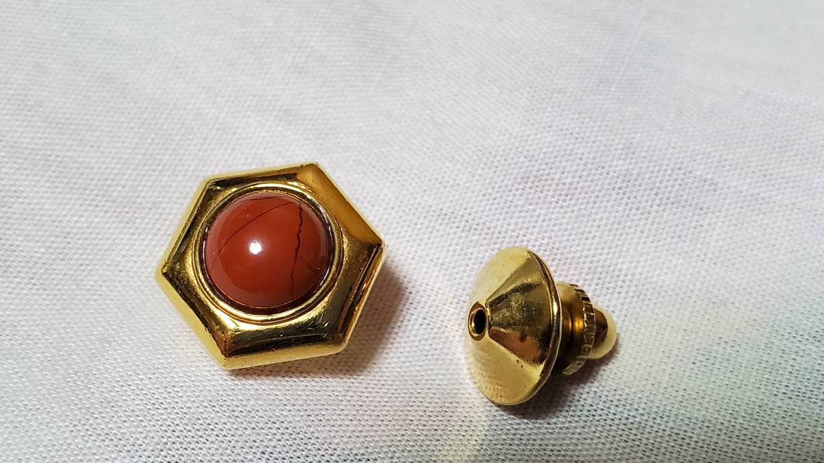 正規 S.T.Dupontデュポン コンポジットストーンタイタニック 赤×金 カボションクラッシュストーンタイピン ジュエリーブローチ ヘキサゴン