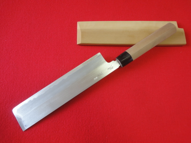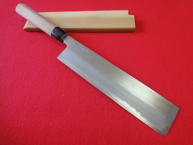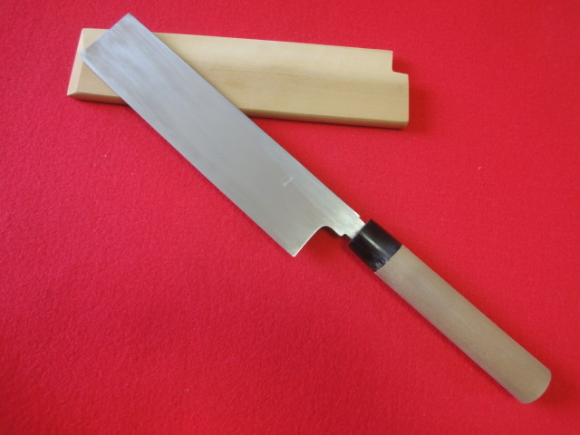 【正本】薄刃包丁 刃渡21.3㎝ 全長37.8㎝ 峰厚4.9㎜ 片刃 ※鞘付 ※中古品 ※全国一律送料1100円