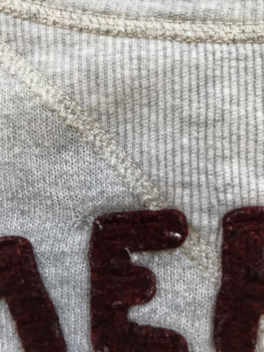 素人採寸ですので、多少の誤差が生じる事をご了承下さい。着丈約49.5cm・襟~袖丈約58cm・身幅約47cmです。新品ではございませんが、古着にご理解ある方でしたら 問題ないレベルです。『E』の左上部分に小穴が開いていたので補習致しましたので、神経質な方の入札はご遠慮下さい。確認はしているのですが、写真撮影時、シミ・汚れ・ほつれ・小穴等見落とす事がありますのでご理解下さい。個人出品ですのでノークレーム・ノーリターンで宜しくお願い致します。
