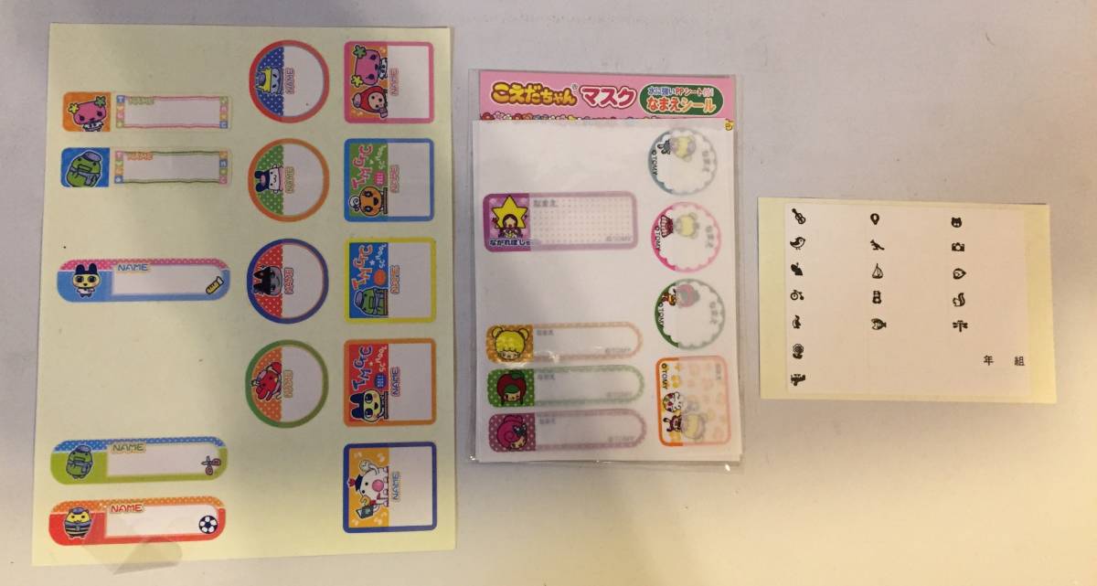 たまごっち、こえだちゃん、ワンポイント、名前シールのセットです。