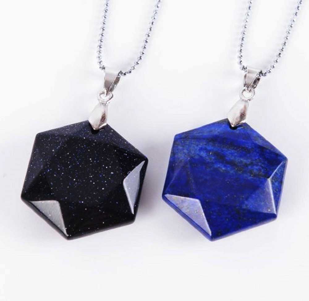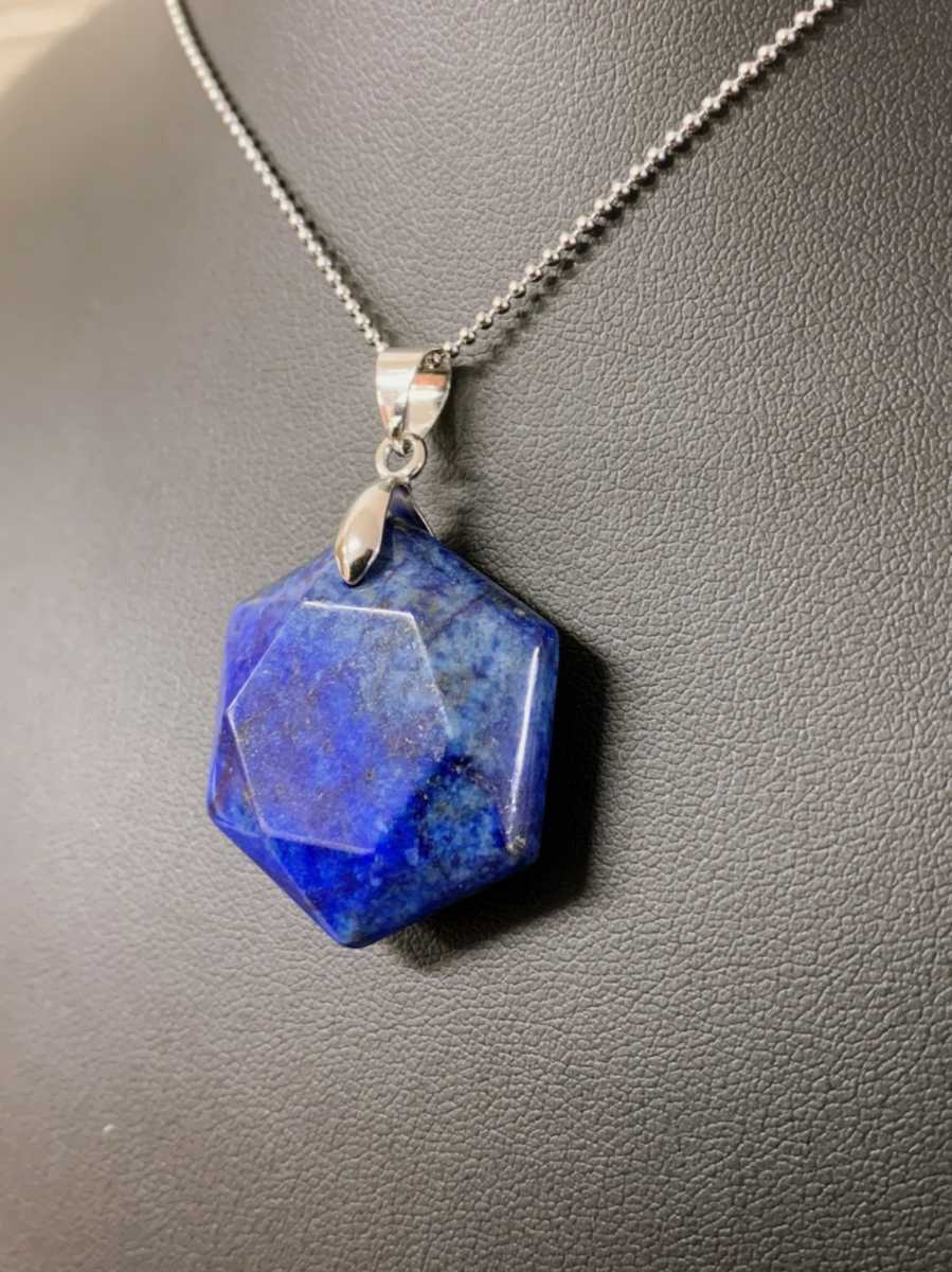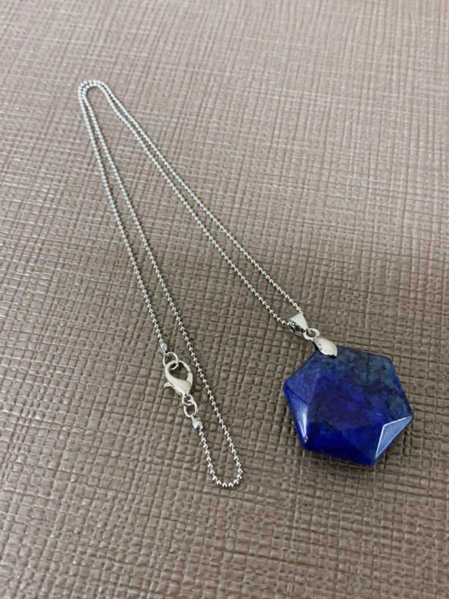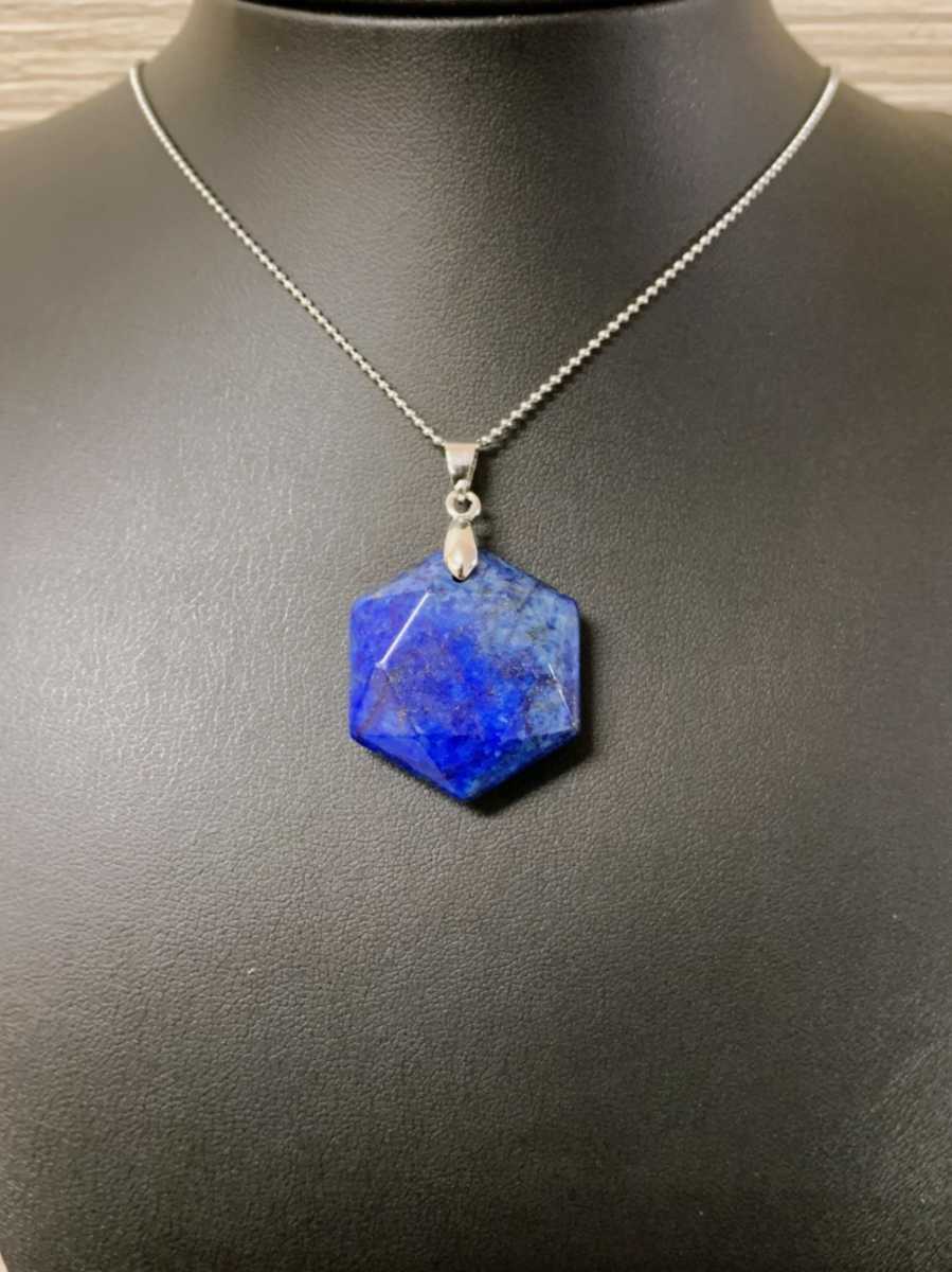 ラピスラズリ 六角形 宝石 ネックレス ペンダント 六芒星 ジュエリー アクセサリー 2980