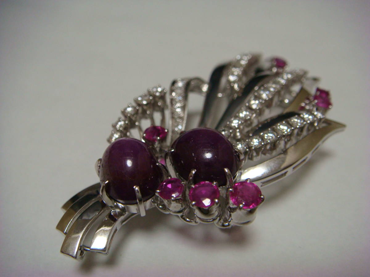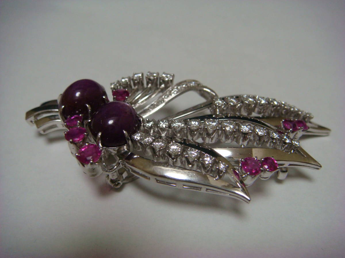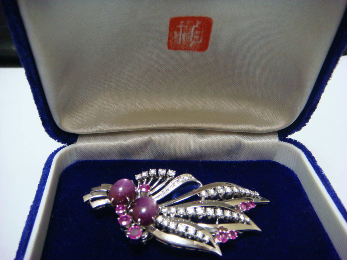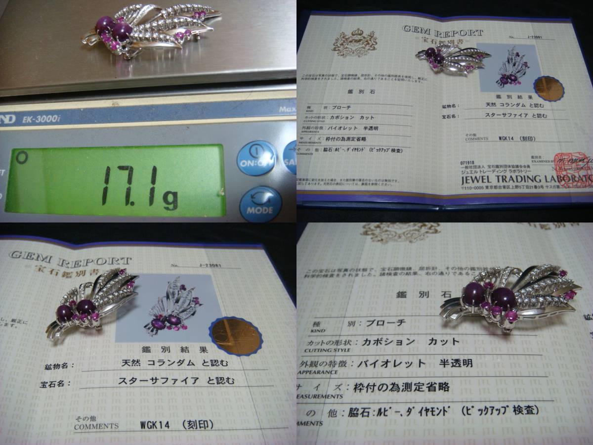 綺麗なダイヤモンドをを使ったスターサファイヤブローチです。帯留めにもなります。K14WGの刻印入り。