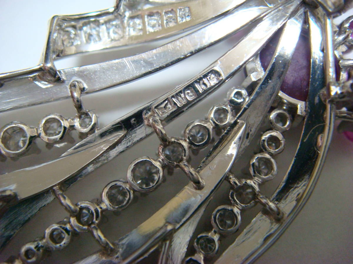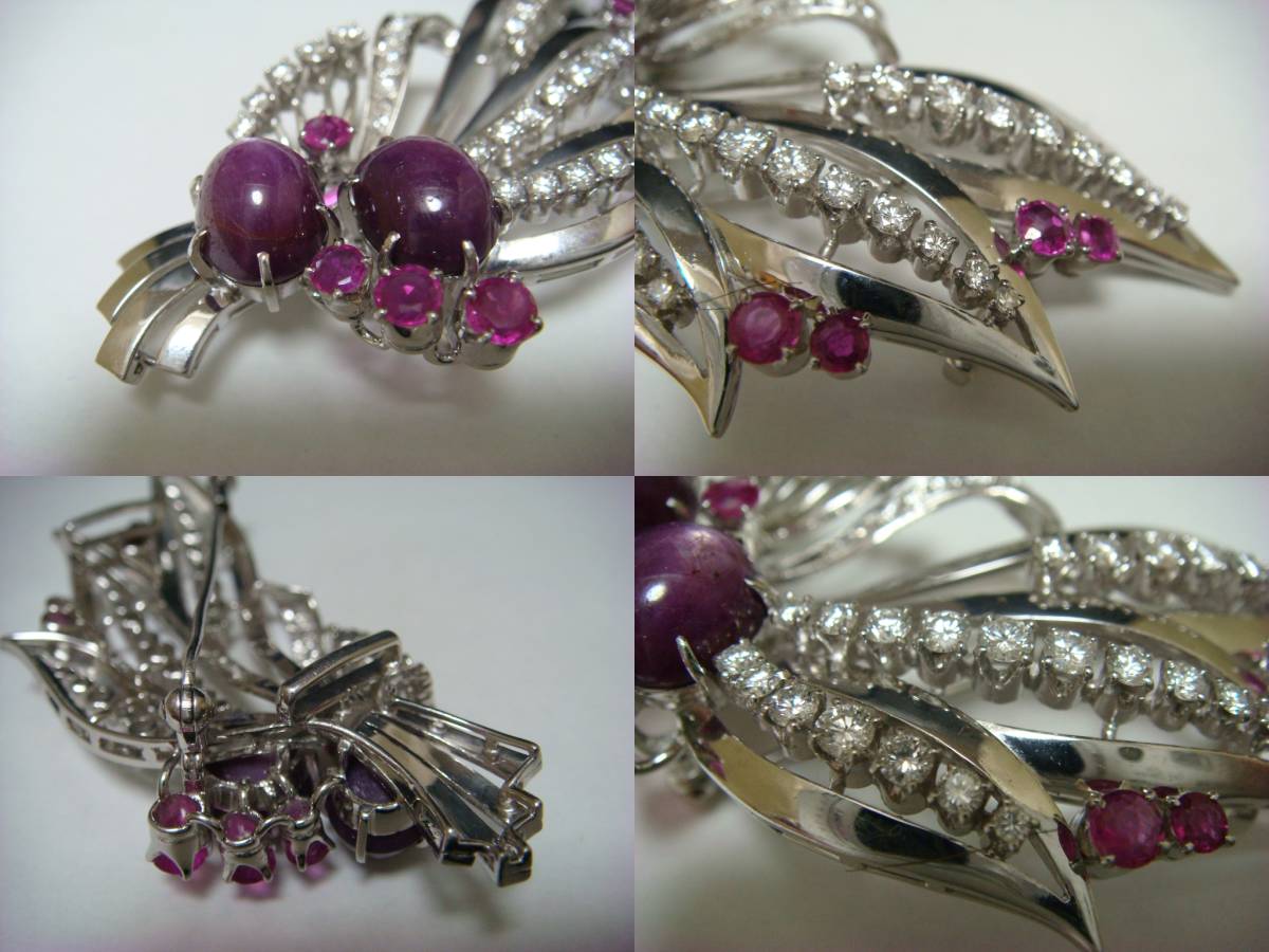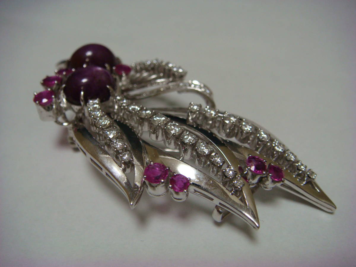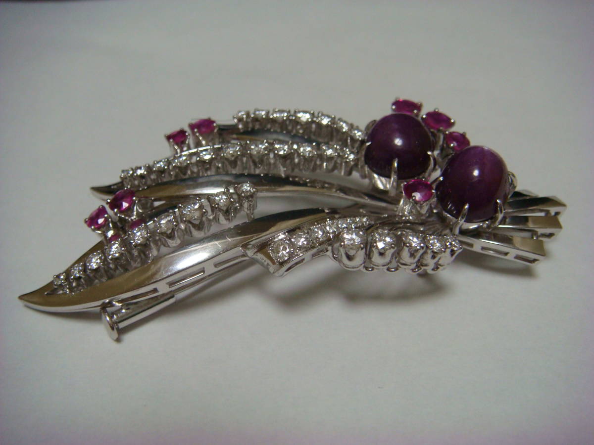 綺麗なダイヤモンドをを使ったスターサファイヤブローチです。帯留めにもなります。K14WGの刻印入り。