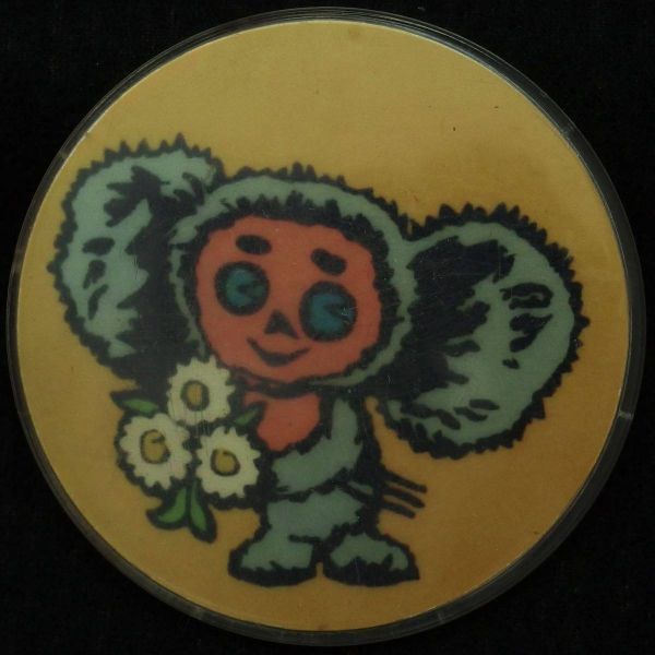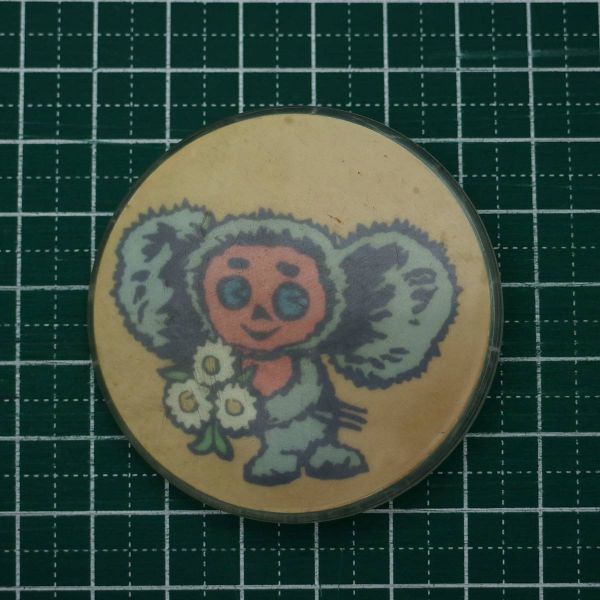 R502◆ 3輪の花を持っているチェブ ◆ ゲーナとチェブラーシカ ◆ ソ連 * ピンバッジ ◆ ロシア * ヴィンテージ ◆
