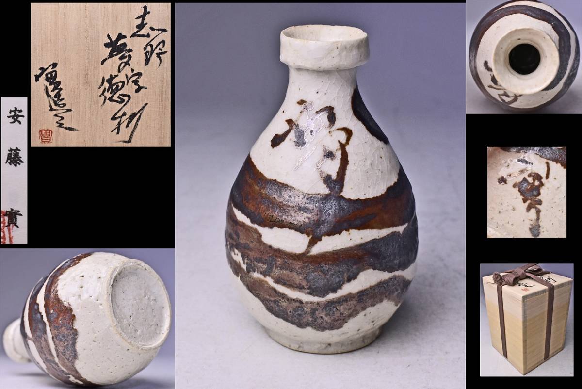 サイズは 80mmx高さ125mm です。 数寄者の ような 作りが 印象的な 安藤實 氏の ぐい呑です。 口元の薄めの作りが 特徴の徳利です。 写真を参考にご入札ください。宅配便80サイズにて発送します。他にも多数出品しております。同梱対応いたします。