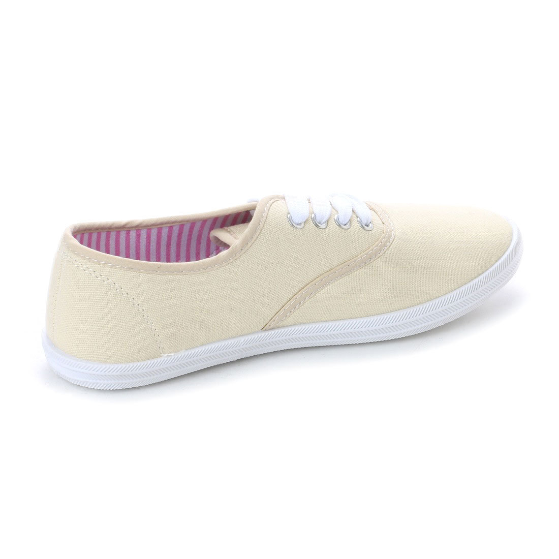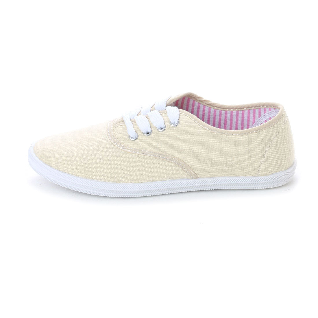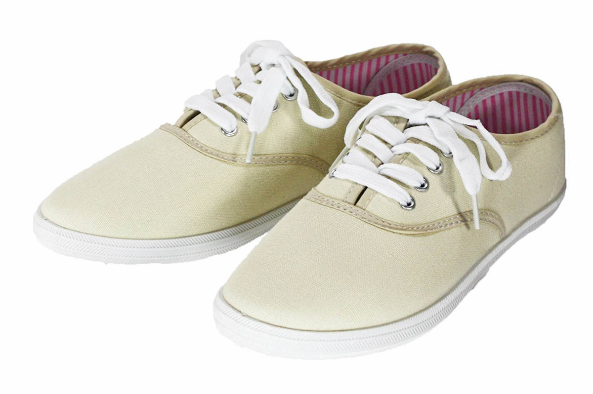 靴ひもがかわいらしさを演出、カジュアルスタイルに欠かせない定番ベーシックなキャンバススニーカー。