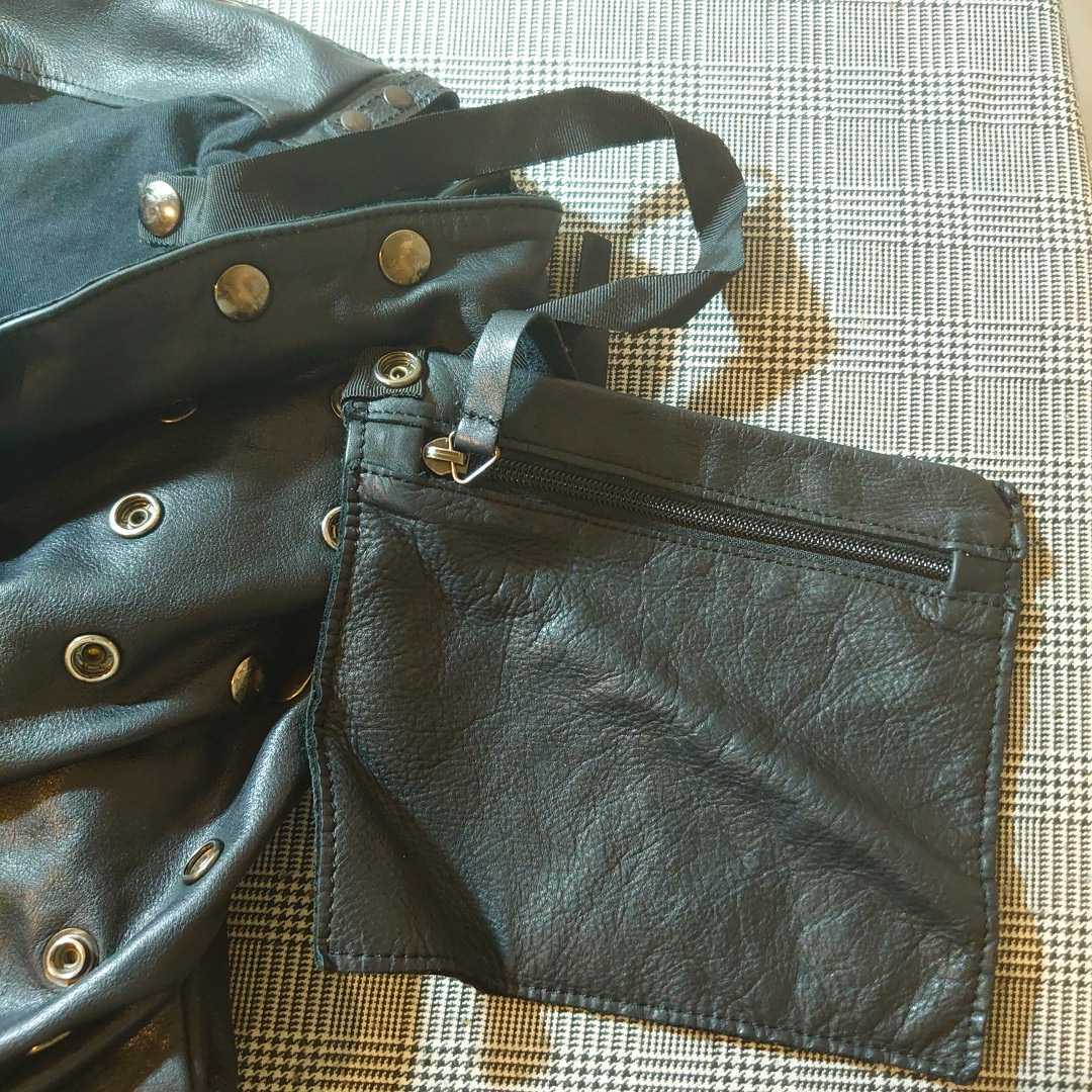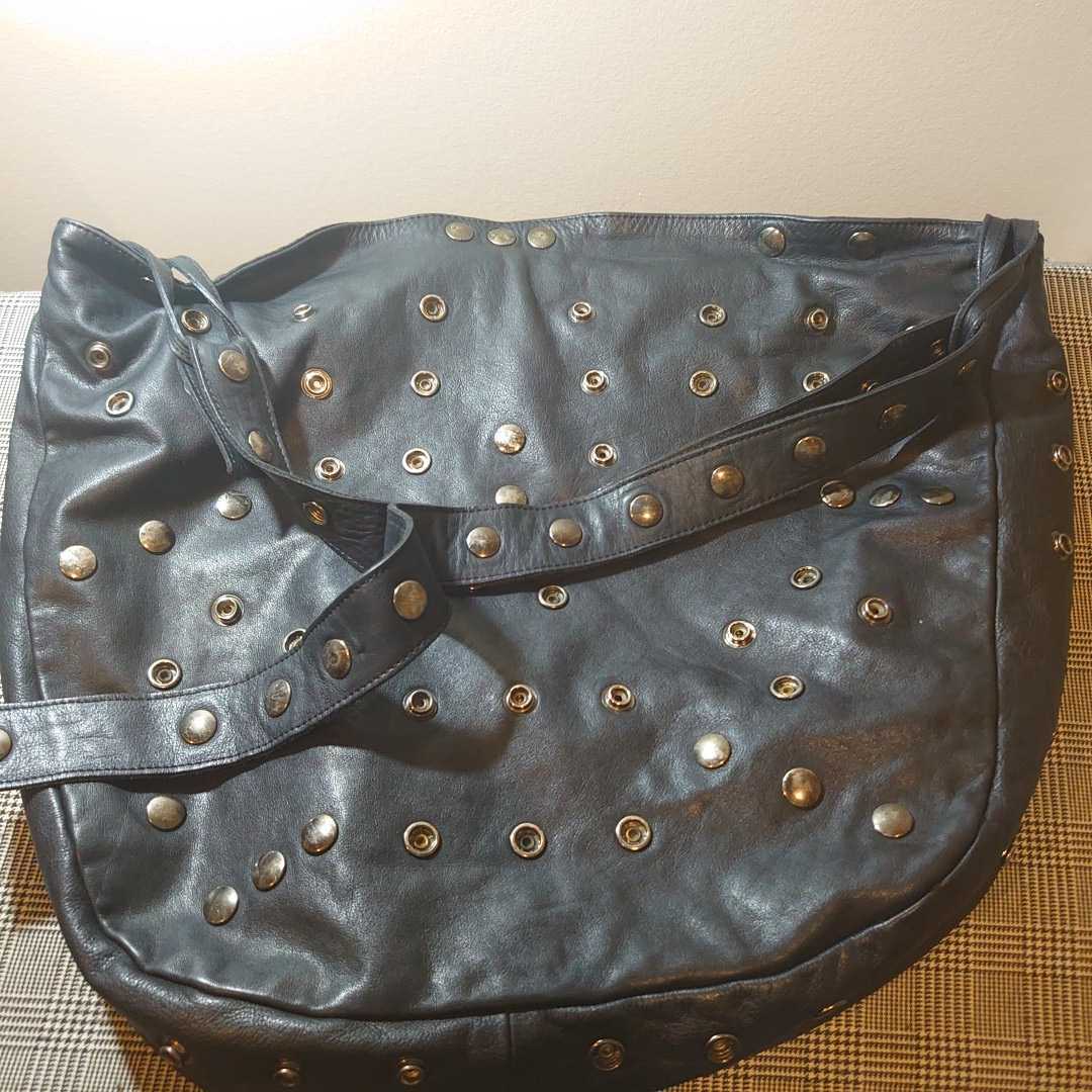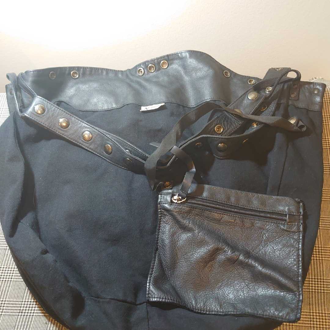 大きさや持ち手の長さをスナップで自在に変形させられるレザーバッグです。大きく、本革なので重さあります。
