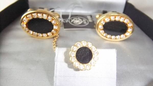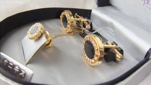 桂 由美 タイピン カウス オニキス ゴールド セット