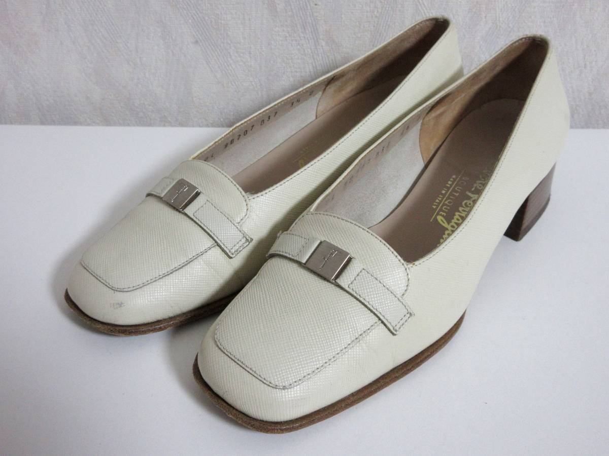 サルヴァトーレフェラガモ レザー パンプス アイボリー系 3 1/2D 小さいサイズ 東8650