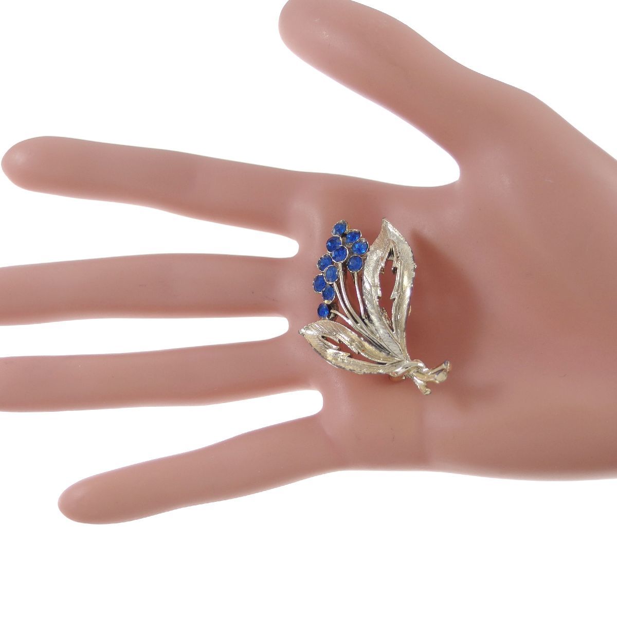 A5595◆ 花束モチーフ * ブルー系ラインストーン 青 ◆ ヴィンテージブローチ ◆