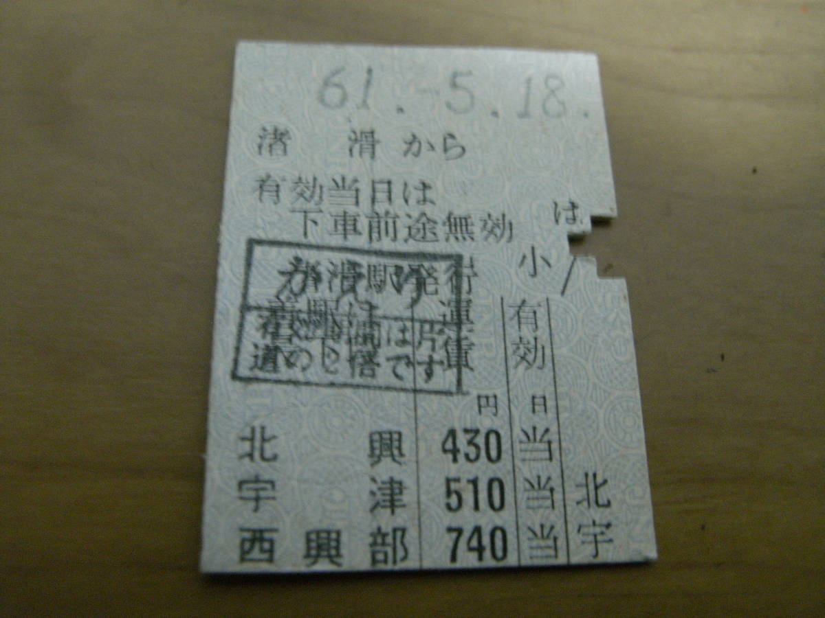 名寄本線 渚滑から西興部ゆき 昭和61年5月18日 渚滑駅発行