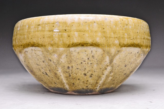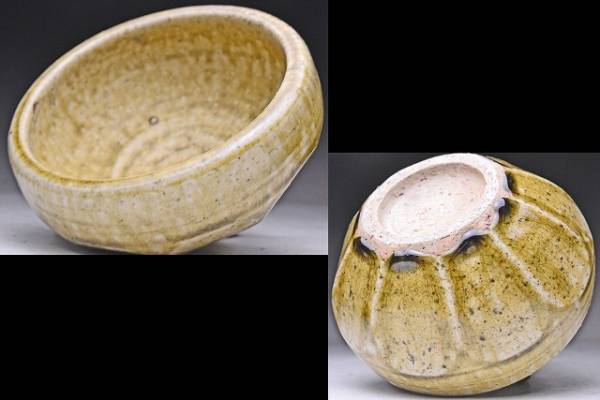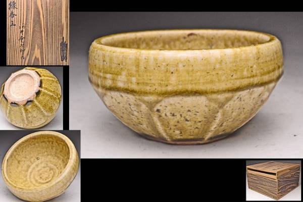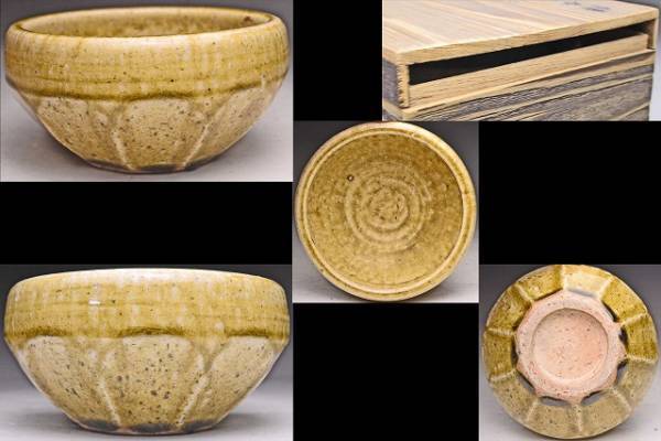 河井寛次郎 か ★ 作者不明 ★ 灰釉面取鉢 ★ 木箱 ★ 民芸陶 ★ 検 黄瀬戸 灰釉 ★ 丼