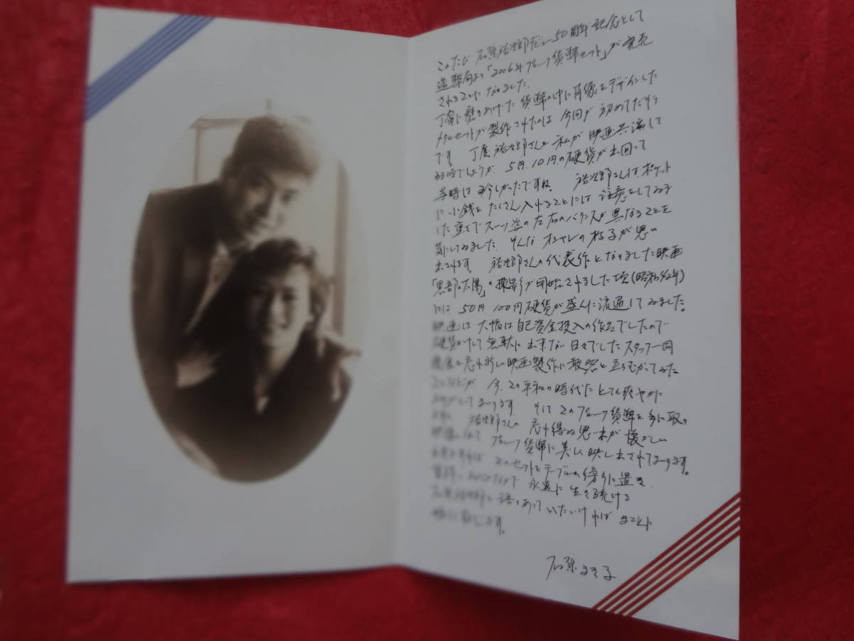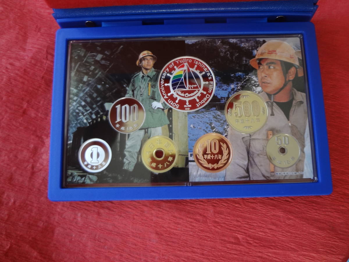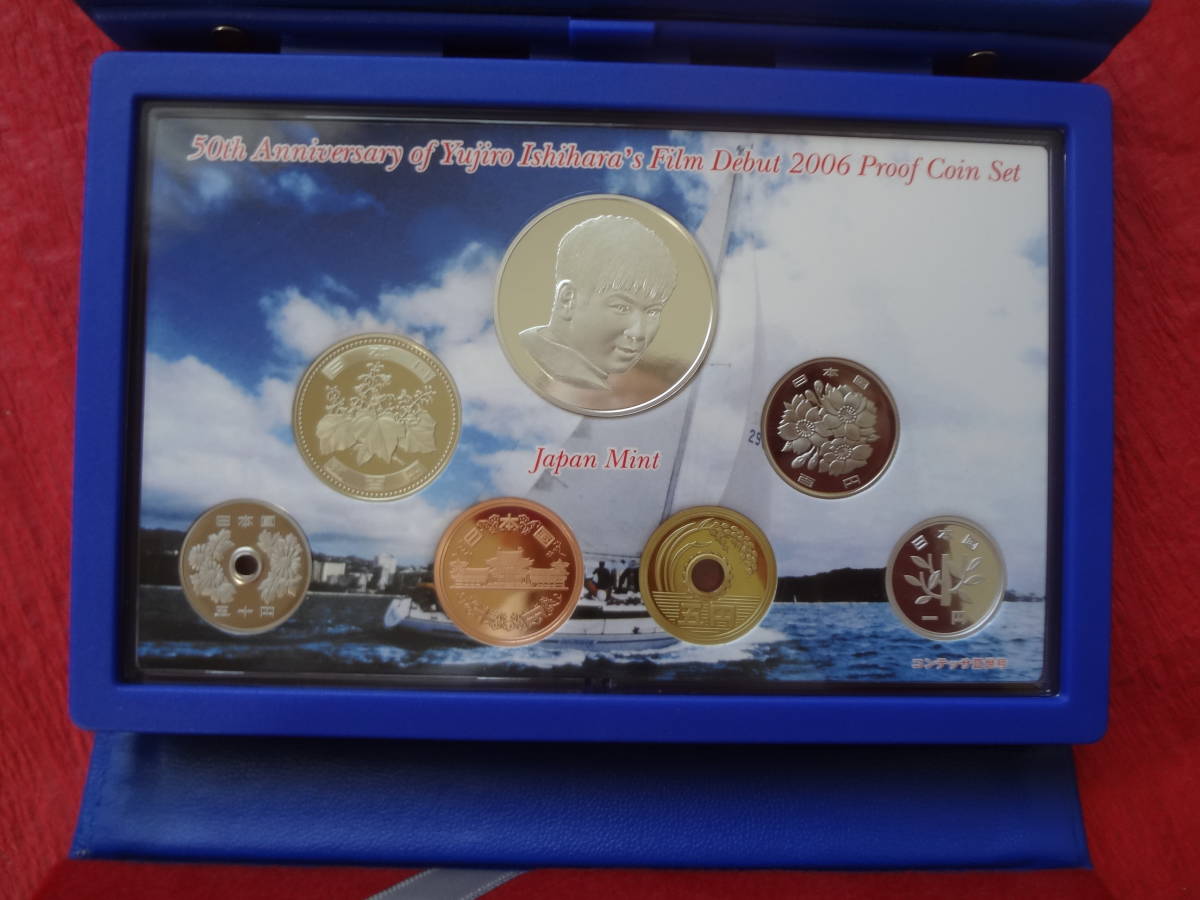この貨幣セットは、石原裕次郎が昭和31年(1956年)に「太陽の季節」でデビューして2006年が50周年に当たることを記念し、製造したものです。